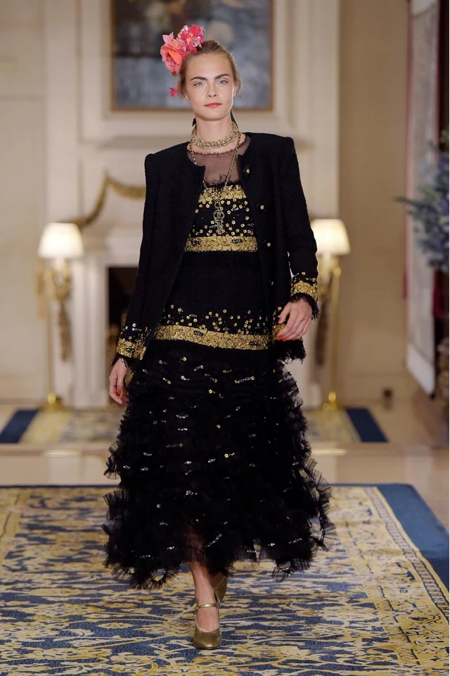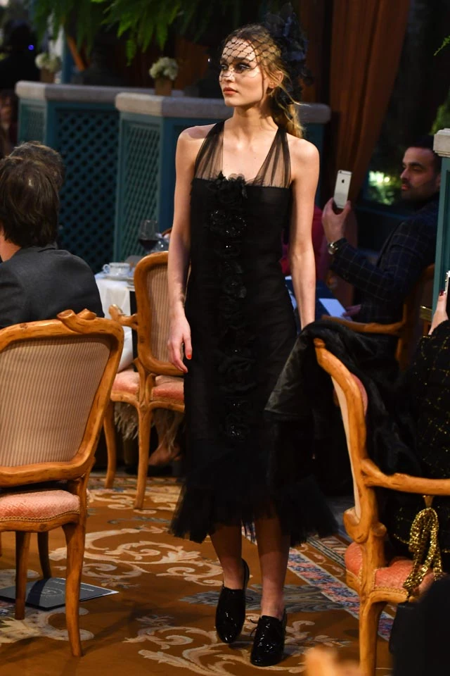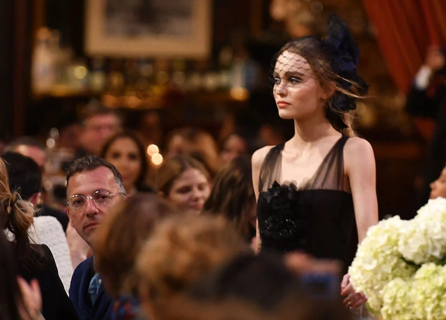 Lily Rose Depp már egy ideje Karl Lagerfeld kis kegyeltje, kezdődött azzal, hogy tavaly meghívást kapott a Chanel bemutatójára – hiszen édesanyja is a divatház múzsája volt éveken át -, majd megkapta a márka szemüvegkollekciójának a kampányát, aztán bemutatkozott, mint az új, fiatalos Chanel No. 5 illat arca. Most pedig már a kifutón is végiglejtett – már ha nevezhetjük a Metiers d'Art bemutatójának helyszínét kifutónak.