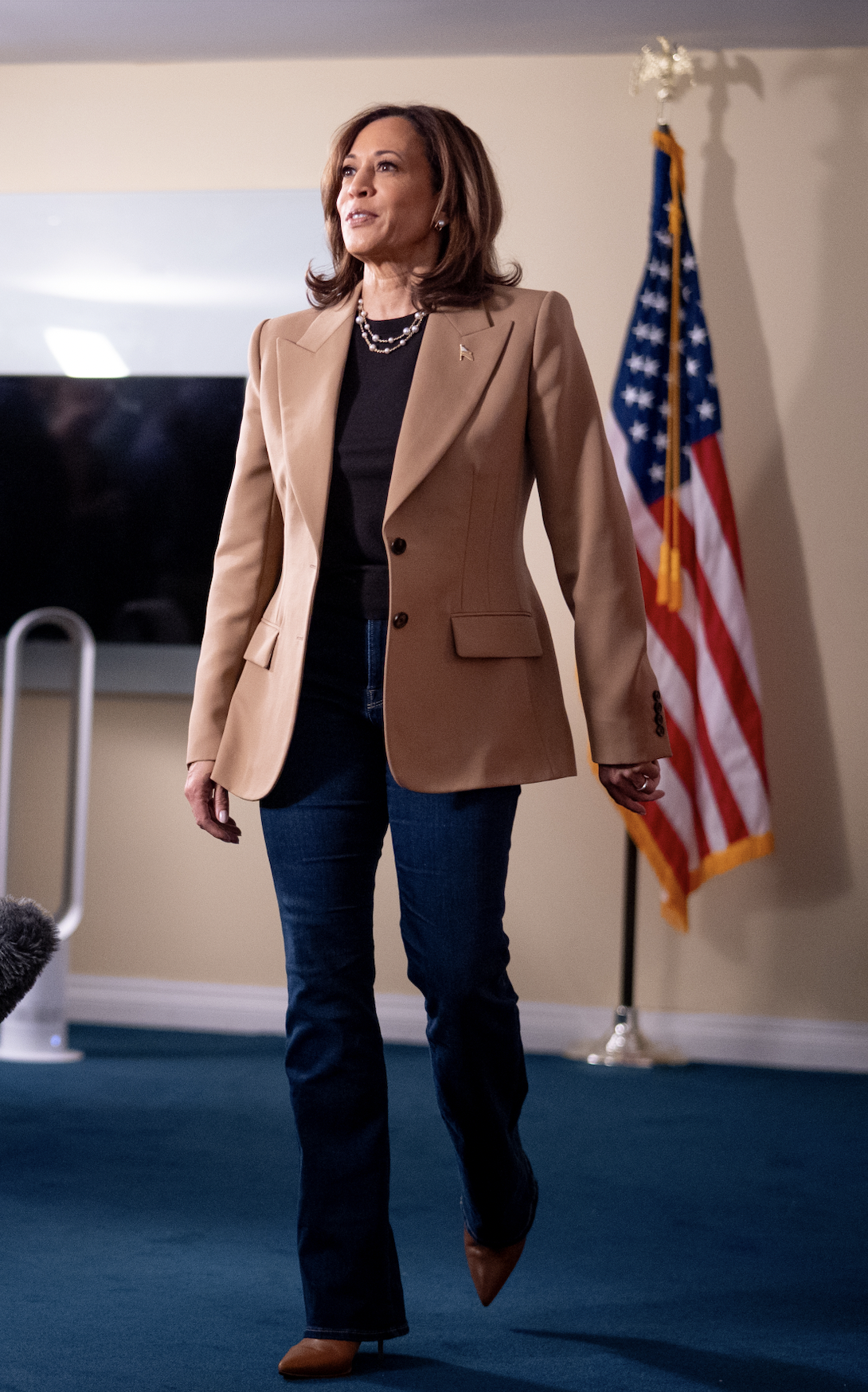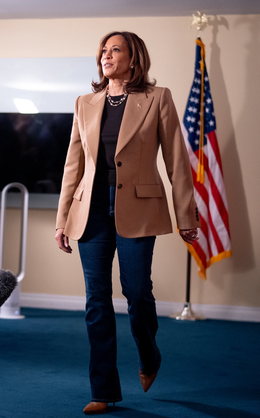 Kamala Harris legújabb megjelenése az őszi corpcore (céges stílus, esztétika) megtestesítője. Az elnökjelölt egy meleg, karamell árnyalatú nadrágkosztümöt viselt, megjelenésében pedig volt egy csipetnyi csavar, amit a cipzár díszítésnek köszönhetett; ettől frissebb, modernebb lett a végeredmény.