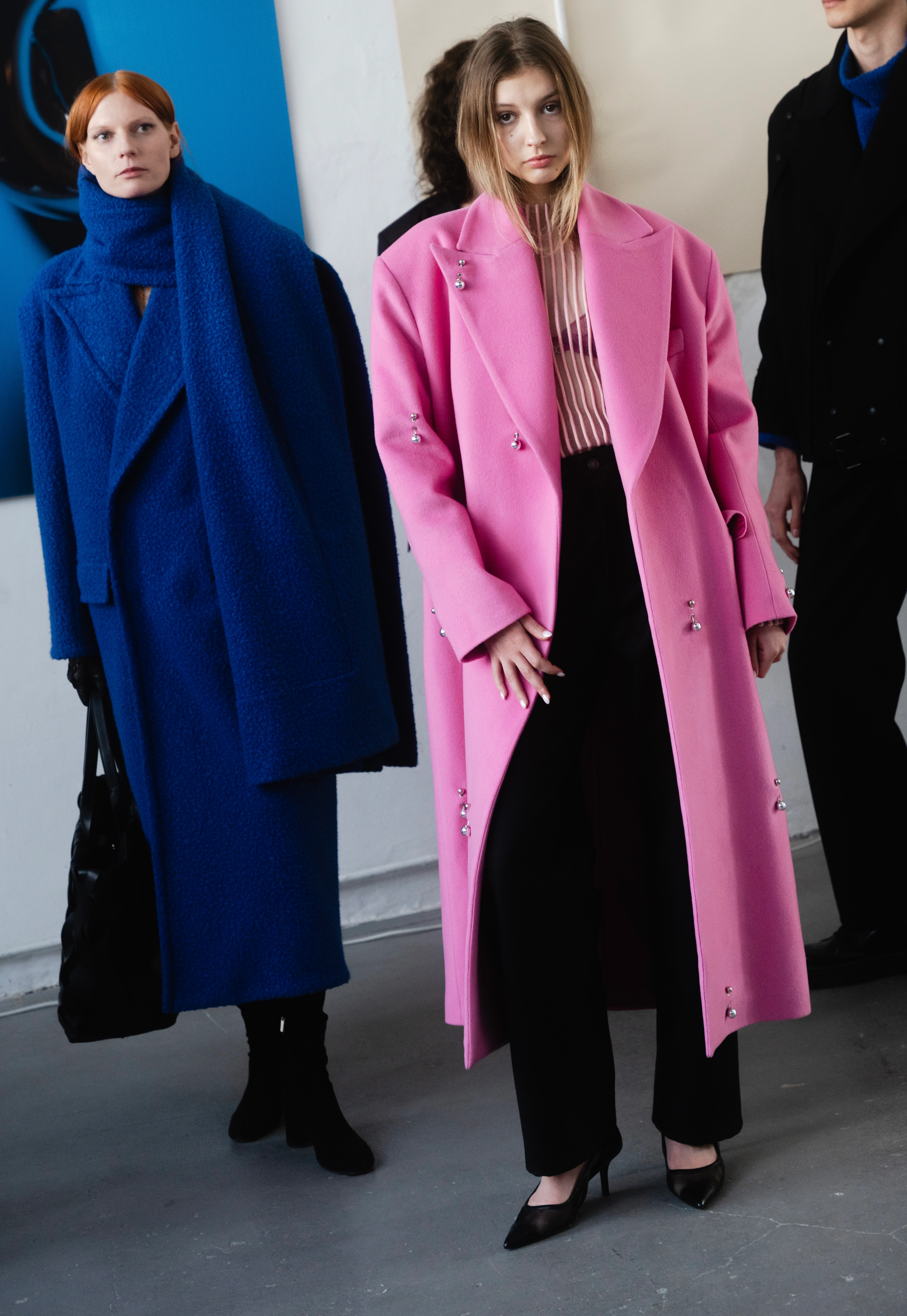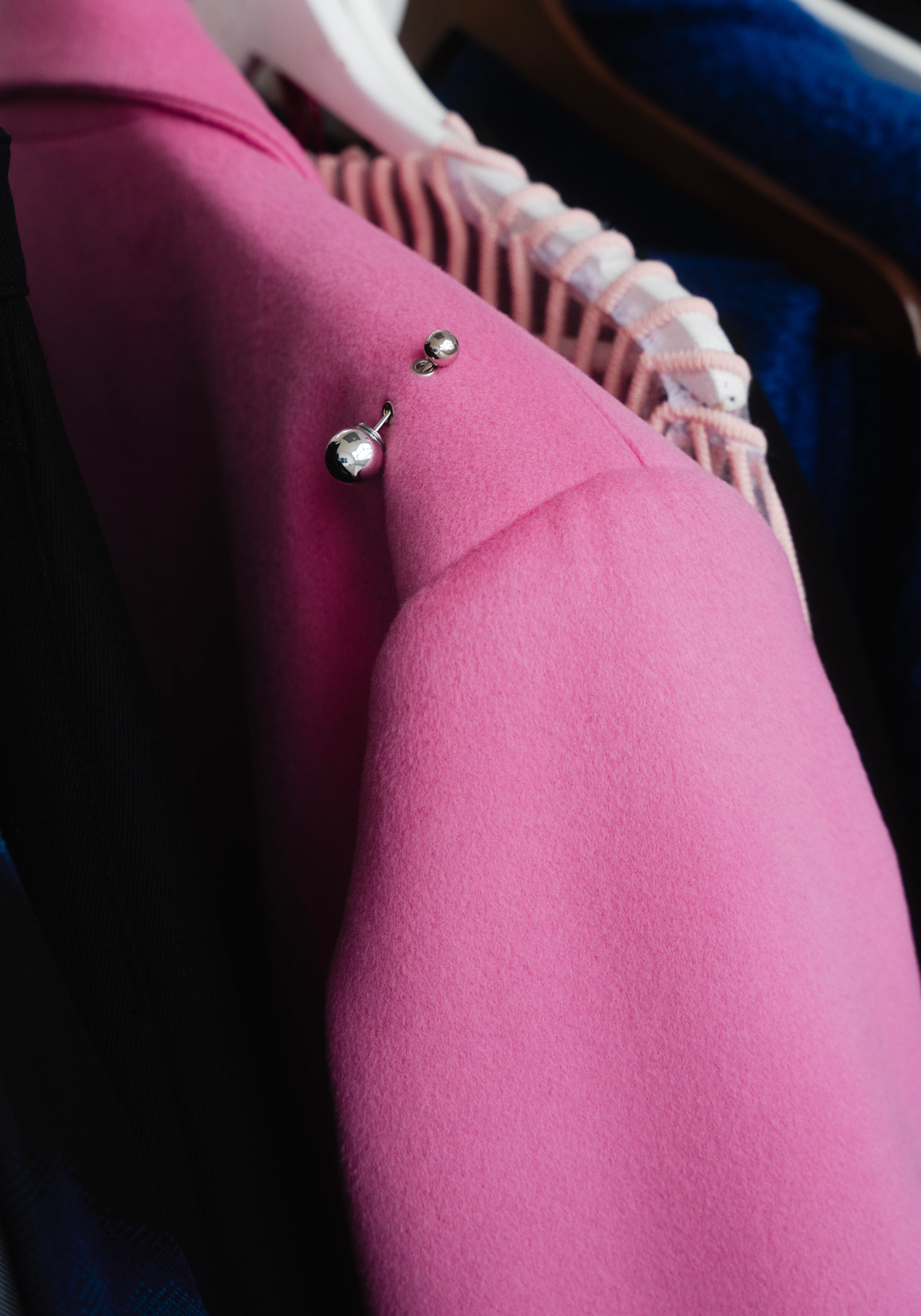 Nagyon gyakran megyünk a milánói anyagvásárra, ahol közvetlenül a gyártóktól rendelünk textileket. Mindig nagyon inspiráló, amikor először találkozunk az éppen aktuális trendekkel, textúrákkal. Sok esetben az anyaghoz készül a terv. Mindegyik ruha más, a pink kasmírkabát egy kicsit meglepőnek tűnhet a márkától, pedig volt már rá példa, hogy egy kollekciónkban nagyon élénk, neonos színeket használtunk.