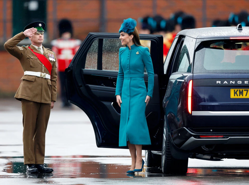 Katalin hercegné és Vilmos herceg Szent Patrik-nap alkalmából nagyon ünnepi hangulatban voltak, persze, hiszen csatlakoztak az ír gárda hagyományai szerint évente megtartott ünnepséghez. Vitathatatlan, hogy Katalin hercegné volt a legstílusosabb ezredes, ugyanis egy meseszép Catherine Walker & Co. kabátruhát viselt, természetesen hozzá illő kalappal, és magassarkúval.