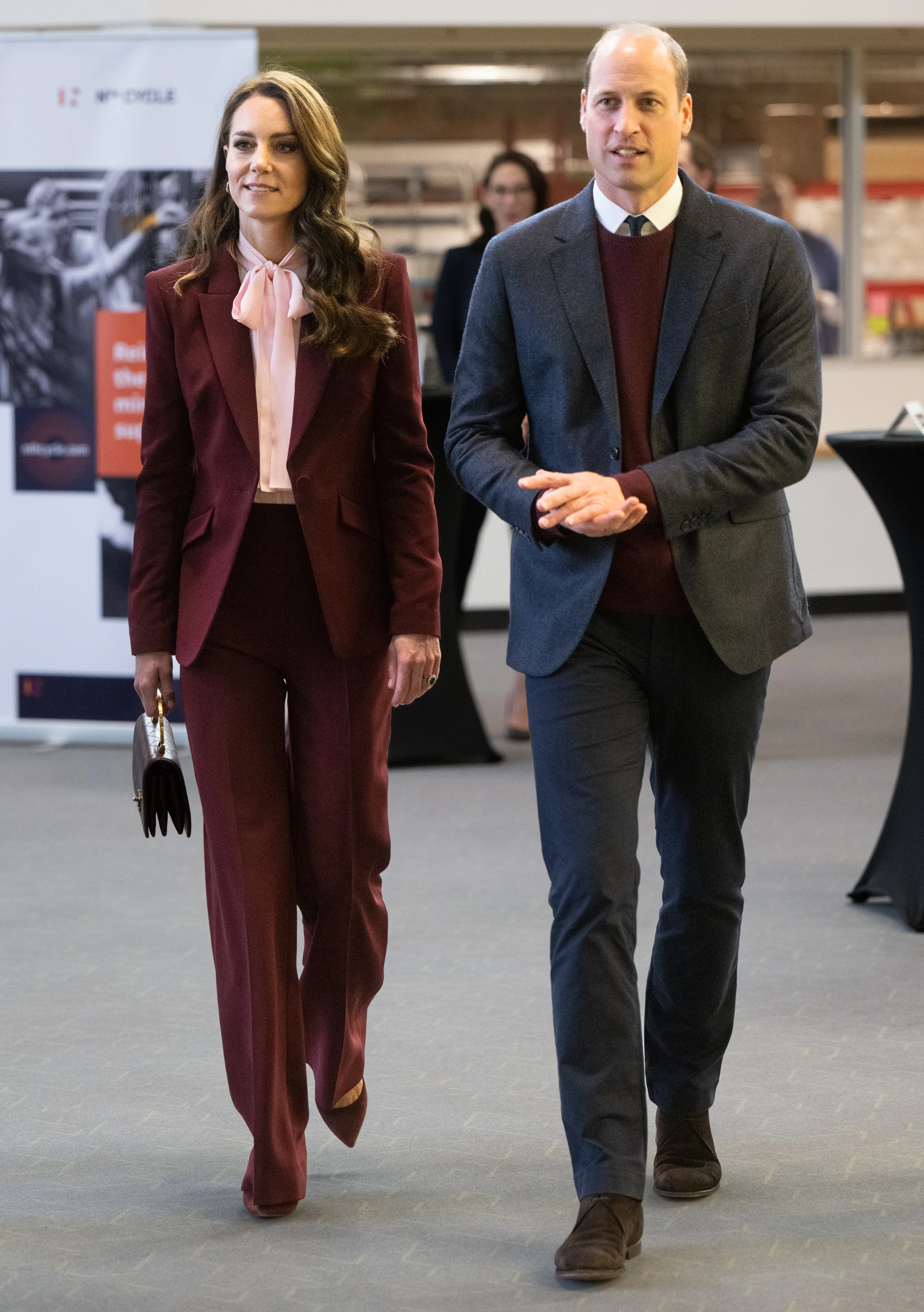 A walesi hercegi pár utazásuk harmadik, egyben utolsó napján ismét stílusosan összehangolták megjelenésüket: Vilmos herceg bordó pulóvere kifinomultan illett Katalin hercegné bordó Roland Mouret kosztümjéhez. A páros a Greentown Labs-nél tett látogatást, amely Észak-Amerika legnagyobb klímatechnológiai laboratóriuma.