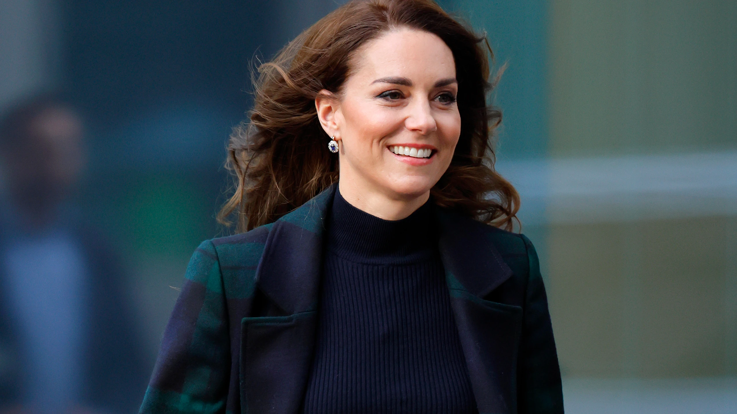 Mintha mi sem történt volna, Katalin hercegné és Vilmos herceg egyértelművé tették, hogy mennyire erősek együtt, még a szettjeik is egymáshoz illők voltak. A walesi hercegné egy sikkes sötétzöld skótkockás kabátot viselt Holland Coopertől, valamint egy tengerészkék maxiruhát a Cefinntől. Lélegzetelállító megjelenését egy sötétkék bőrövvel, egy sötétzöld Mulberry táskával, egy pár tengerészkék Gianvito Rossi magassarkúval és imádott zafír-gyémánt fülbevalóival egészítette ki. Vilmos herceg megjelenésének színpalettája tökéletesen illett Katalin hercegnőéhez, a páros mosolyogva integetett az őket üdvözlőknek.