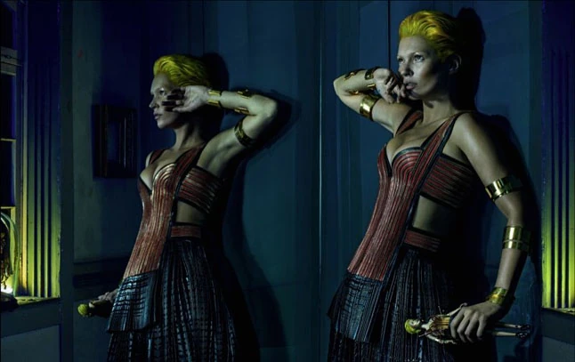 Kate Moss az Alexander McQueen legújabb kollekciójához adta milliódolláros arcát. A 40-en is túljáró szupermodell a legnagyobb lazasággal pózol együtt egy félelmetes babával Sarah Burton ruháiban.