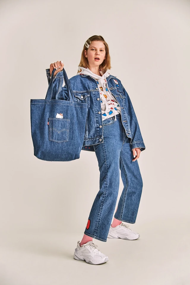 Az utcai viselet esztétikáját szem előtt tartva, a kollekcióban pólók, topok, kapucnis pulóverek és farmer lesznek, mind telis-tele a roppant népszerű japán karakter mintáival. A kulcsdarabok egyike a Levi's Baggy Overalls Hello Kitty printtel borítva, az oversize Dad Trucker dzseki Hello Kitty felvarrókkal, és az Unbasic Hoodie a klasszikus Levi's Batwing logón lazító Hello Kitty -vel és a barátaival.