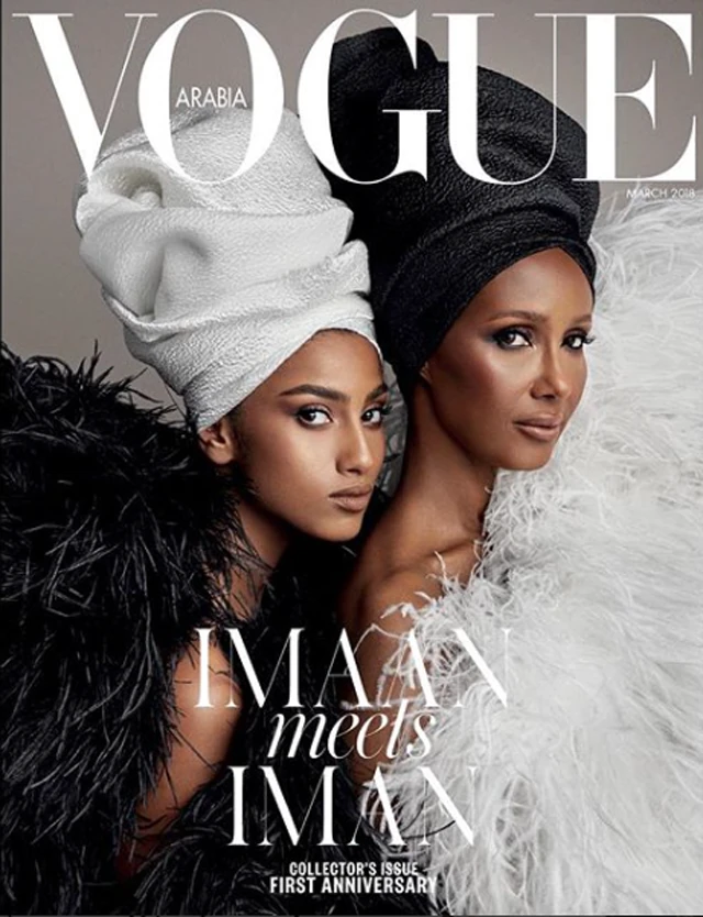 Két modellgeneráció találkozott a Vogue Arabia márciusi számának címlapján. A legendás díva, Iman Abdulmajid és a fiatal Imaan Hammam fekete-fehér turbános-tollas szettben, összebújva pózol a kamerának.