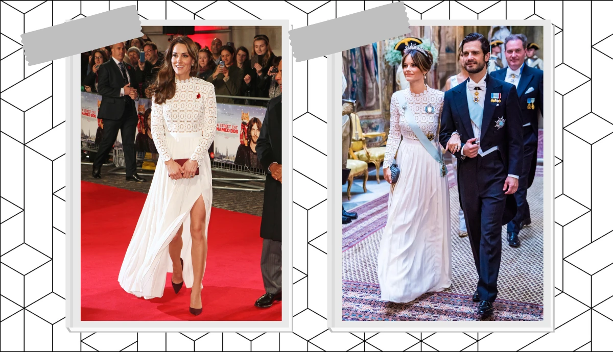 Zsófia svéd hercegné 2019 júniusában tündökölt egy állami banketten egy fehér Self-Portrait ruhában, míg Katalin hercegné egy szoknyán lévő hasítékkal viselte ugyanezt a ruhát még 2016-ban.