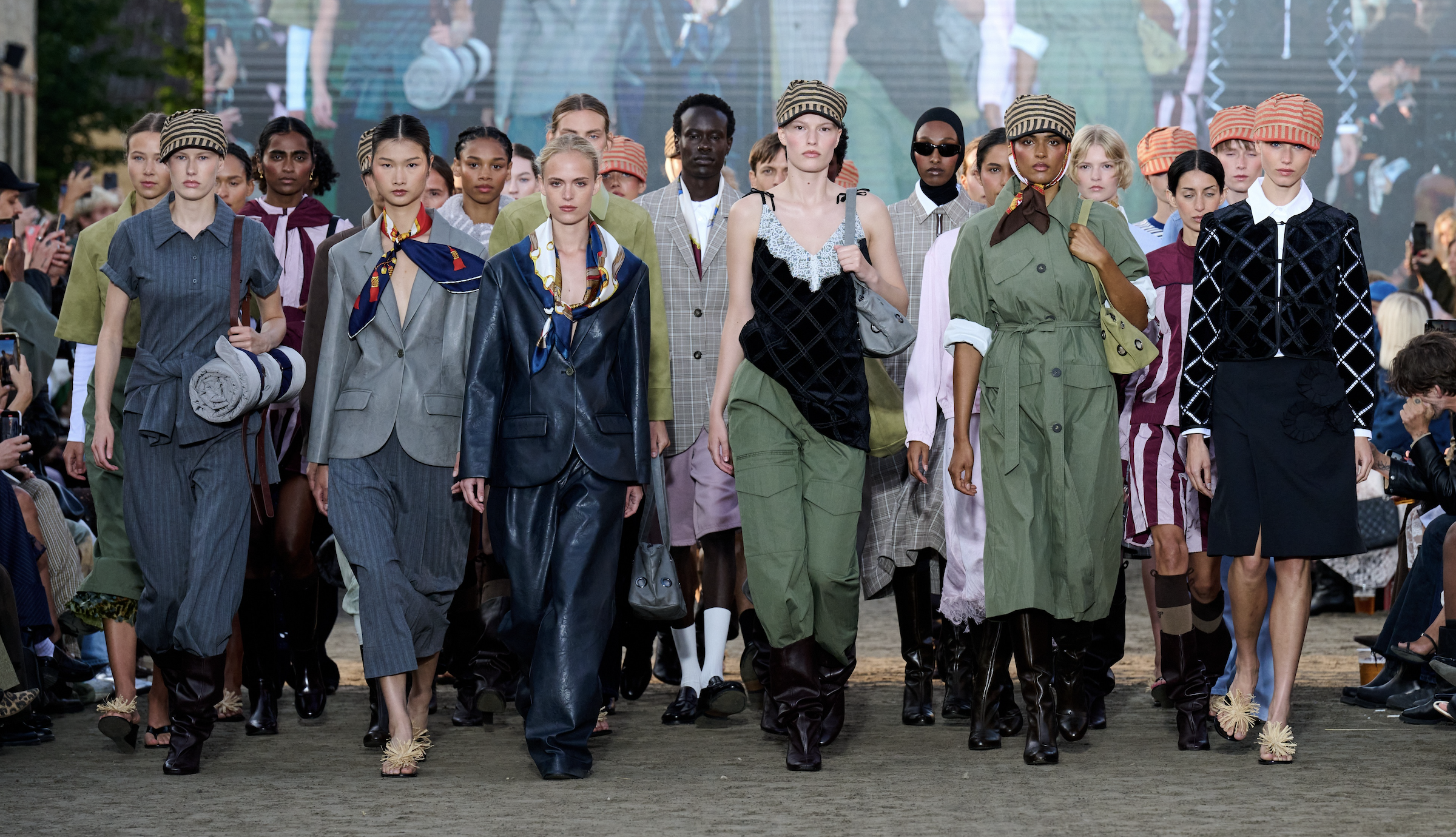 A praktikusság és a dán érzékenység találkozott a ballonkabátok, cargo rövidnadrágok és kétrészes szettek formájában, amelyeket nőies kiegészítők, sálak és raffia részletek tettek teljessé. Az eredmény egy olyan kollekció lett, amely a lóversenyek eleganciáját és a természetes környezetet ötvözte.