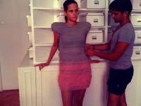 Ha ez még nem lenne elég az amerikai szállítmány feladásának határideje is holnap lesz. Ez számunkra rengeteg adminisztrációval jár, ráadásul személyesen csomagoljuk, címkézzük fel, és tesszük el a ruhákat. Azért ez a nagy divatházaknál nem így van? reméljük egyszer mi is csak külső személői leszünk ennek az őrületnek. Legnagyobb segítségünk ilyenkor Teca (azaz Havancsák Teréz) aki fiatal divattervező TANULÓ, és több szezon óta szervezi velünk a szállításokat...ráadásul András rajzain a szigorú konty frizurákat is ő inspirálta. Tavaly szakmai gyakorlatra jött hozzánk, és azóta sem szabadult. Köszönjük szépen az összes eddigi kommenteket, nagyon szeretjük olvasni őket!