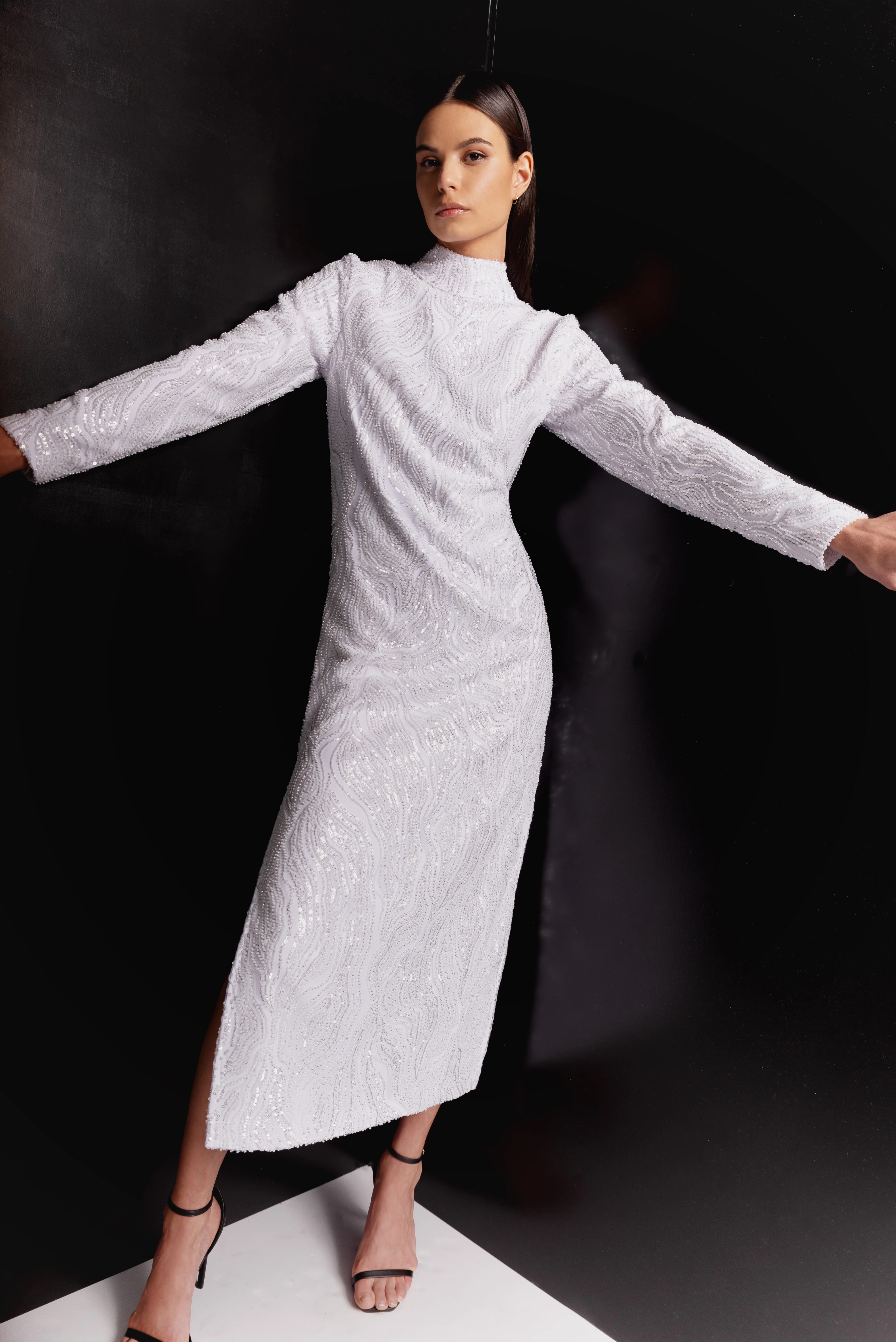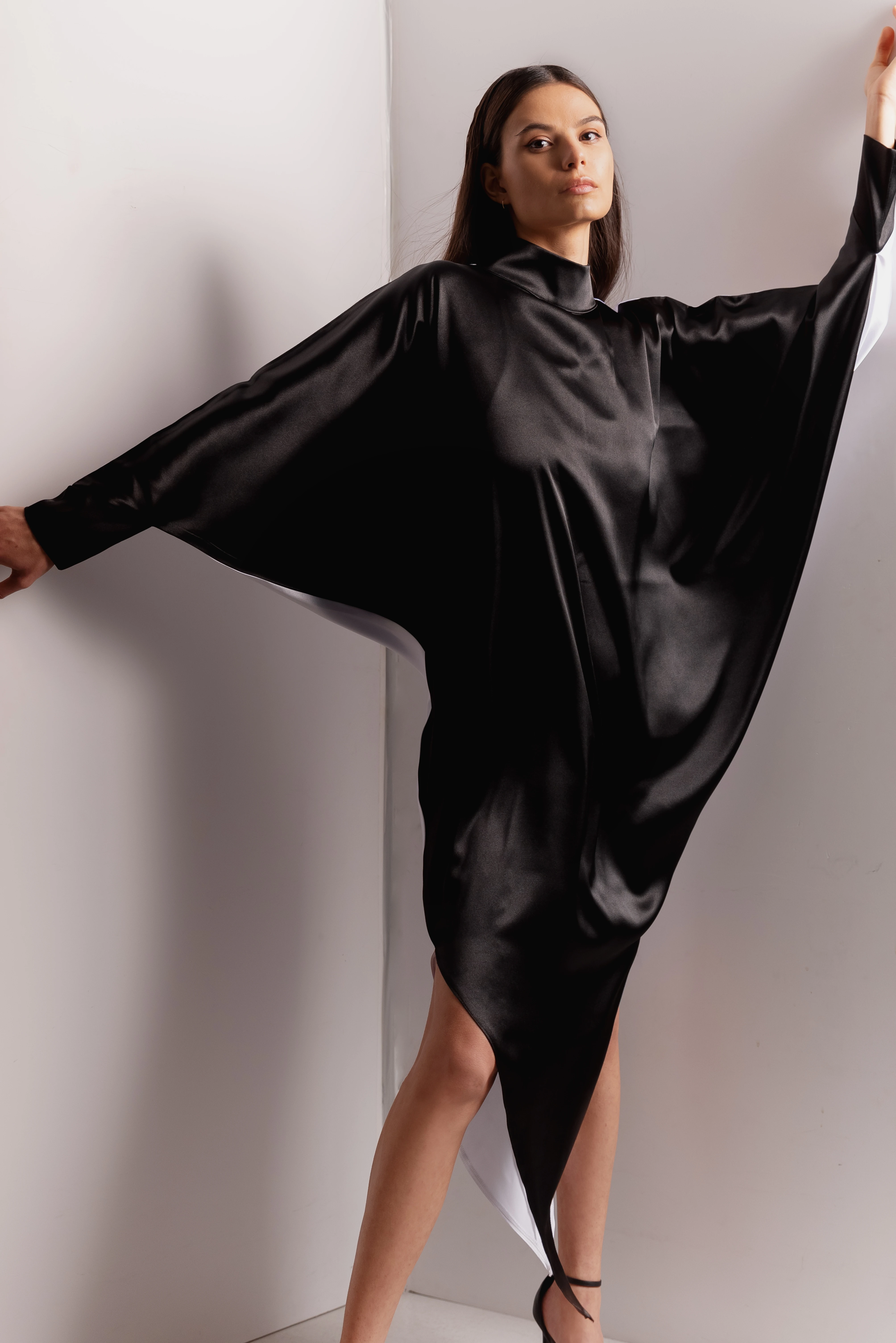 Lakatos Sándor női kollekciója ugyanazt az erőteljes, kontrasztokra épülő vizuális és formavilágot követi, mint a divattervező férfi kollekciói. Felbukkan a jól ismert vonalminta is, melyet a tervező a testén is visel mint tetoválást.