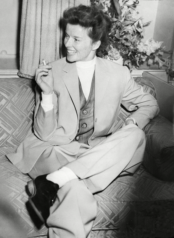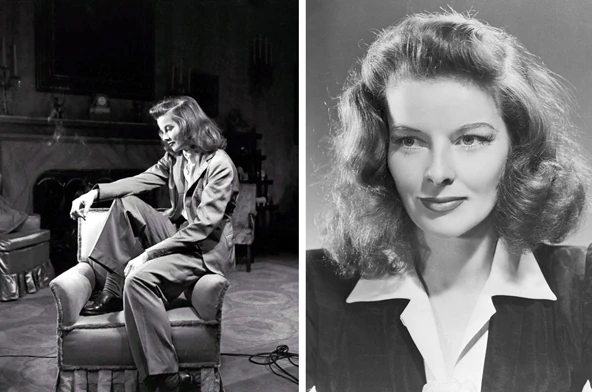 Mondhatnánk, elkapta a változás pillanatát, az átalakult világban ő testesítette meg a modern amerikai stílust. De ehhez idő kellett. Az RKO Pictures vezetői egyszer például elrejtették civil bő nadrágját és ingét, mialatt ő egy filmjelenetben dolgozott. Így akarták rávenni a megkívánt nőies öltözködésre. Az öltözőbe visszatérő Hepburn látva a helyzetet, megfenyegette őket, hogy meztelenül távozik a stúdióból, és elkezdett vetkőzni. Azonnal visszakapta a holmiját.