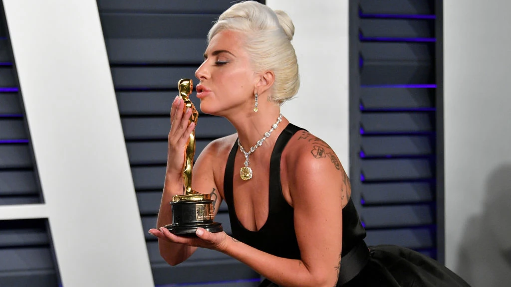 A kiválasztott szetteket ikonikus módon szerették volna megkoronázni, ezért a Tiffany & Co.-hoz fordultak. A Tiffany méltán leghíresebb darabjára esett a választásuk: a Tiffany-gyémántra. A több mint 140 évvel ezelőtt felfedezett sárga gyémántkő 128,54 karátos, és értéke állítólag felbecsülhetetlen. Ezt a gyémántot még Audrey Hepburn is viselte, aki után elsőként vehette fel Gaga.