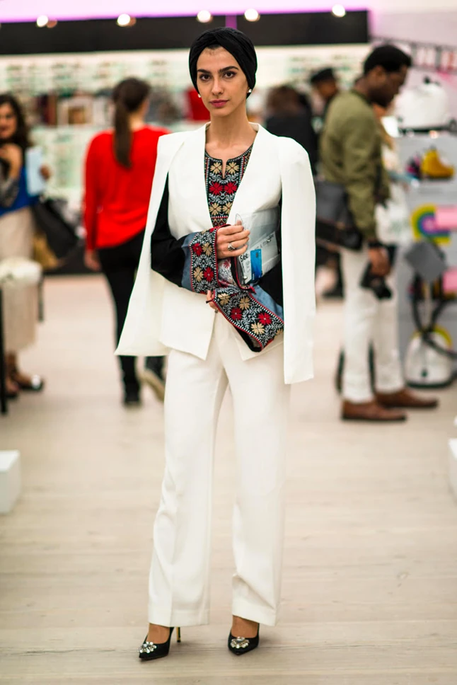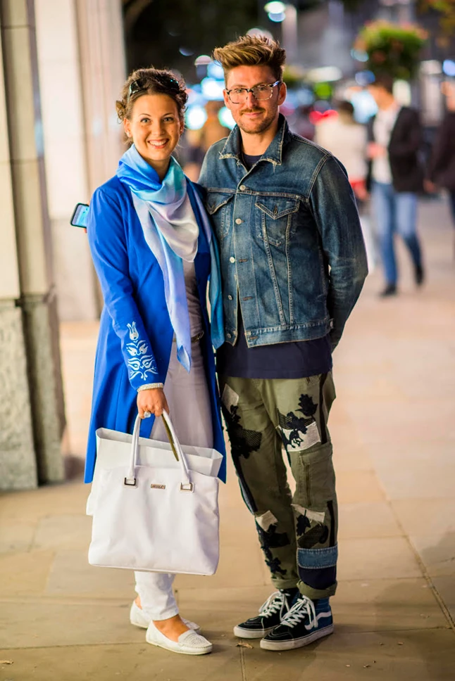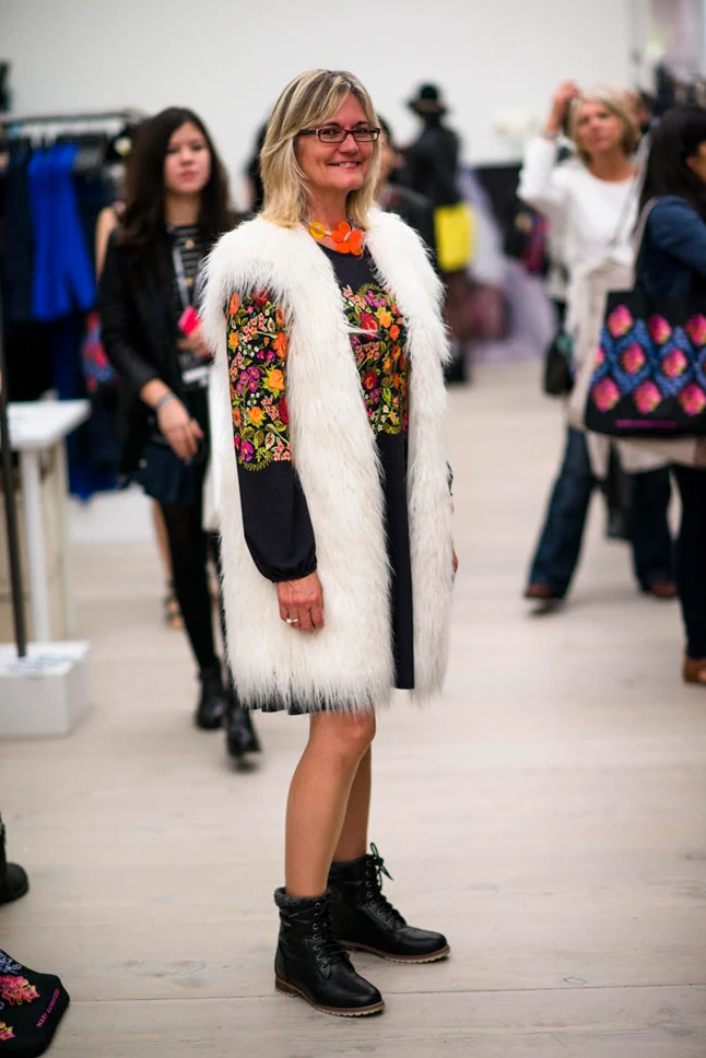 London Fashion Weekend harmadik napjáról is elmondhatom, hogy stílusos megjelenésekből most sem volt hiány. Valószínűleg azért, mert az általam kézzel festett, magyaros motívummal díszített kabátomat viseltem, szinte csak olyan öltözetekre figyeltem fel, ahol a különböző népviseletekből átvett elemek köszöntek vissza a ruhákról. Nem tudtam eldönteni, hogy én vonzottam be őket vagy ők engem, de egymásra találtunk. Ráadásul a kiállításon felfedeztem a Little White Lie divatmárka munkáit is. Ők például az orosz folklórból inspirálódtak, a ruhák díszítésén ez nagyon jól látható.