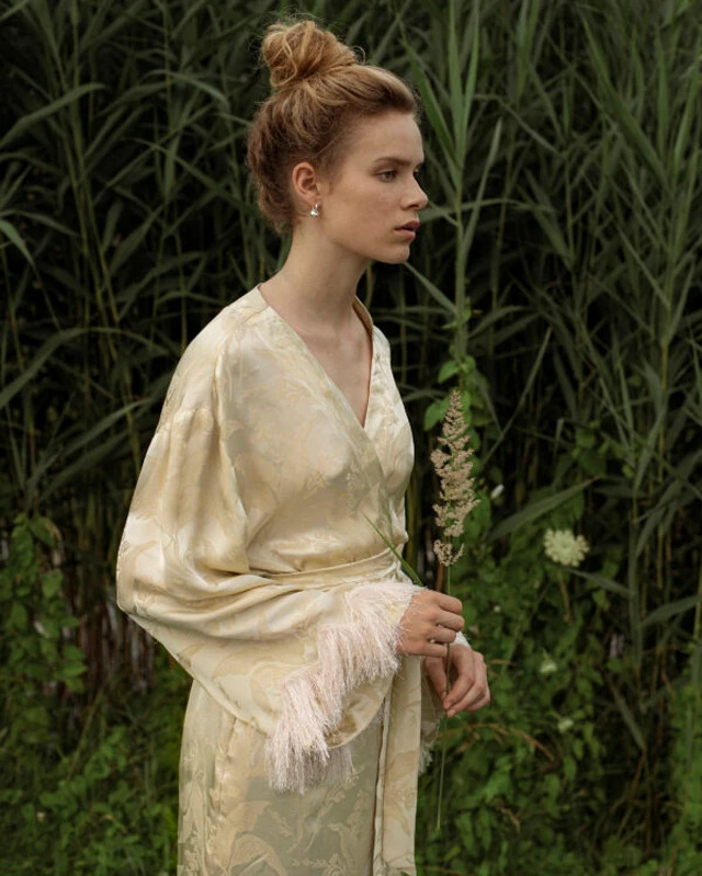 A Chi-Chi rojtos kimonó. Ez megtestesíti a játékosságot, a kényelmet, a minőségi anyaghasználatot, és a francia luxus életérzést az inspirációból.