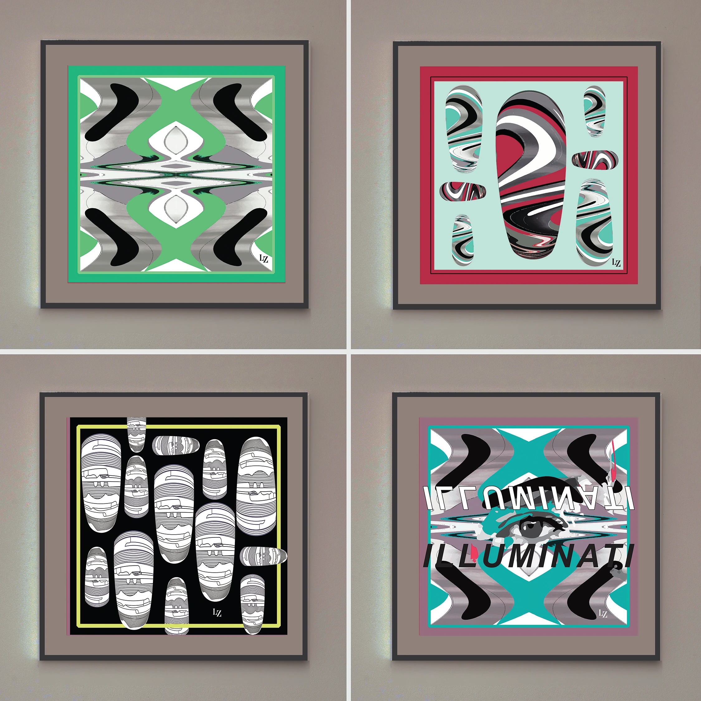 A selyemsál multifunkcionális kiegészítőként és képzőművészeti alkotásként is megállja a helyét – ebben a sokoldalúságban látta meg a fantáziát Lonovics Zoltán, aki a pandémia utáni években két formabontó kiállítással tért vissza a kortárs művészeti szcénába: először a Twist, majd a Nails collection kapcsán mutatta be a közel egy évtizedes gyűjtőmunkájával készült alkotásait. A változatos technológiával gyártott képeket Swarowski kristályok, tollak, selyemanyagok, vintage és újrahasznosított textilek borítják, egy-egy minta szublimációs nyomással került selyemre, máshol Zoltán hímzett. Bár textúrában és technikában sokszínűek a képek, árnyalatban mégis a monokróm irányzathoz húznak közelebb, egy-egy élesebb neonzöld vagy vörös színnel tarkítva. Téma szempontjából mindkét kiállításának anyagában visszaköszön a mandula formájú köröm motívuma, melynek van egy erős underground rave-kultúra referenciája, valamint a művész számára egy maghatározó és kifejező elemmé vált az alkotómunka során és utána is.