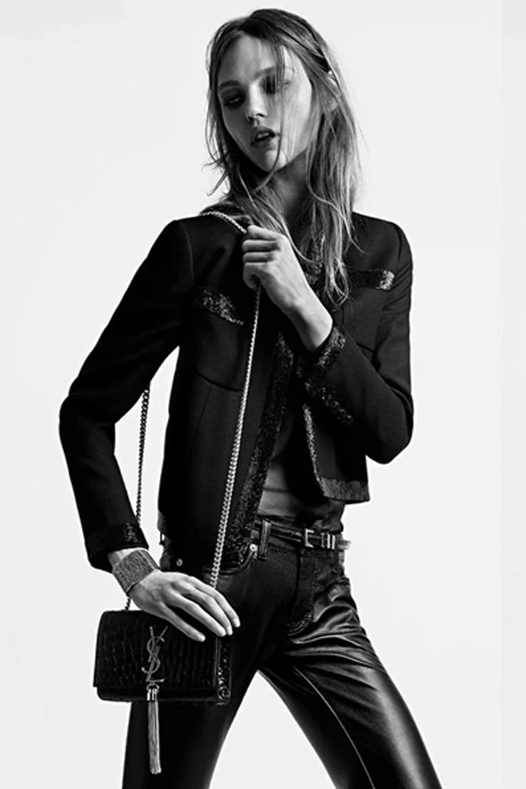A most is meglehetősen sovány orosz topmodell tökéletes választás a megújuló márkának. Hedi Slimane fekete-fehér kampányképein a sötétre, szinte karikásra sminkelt szemekkel, a majdnem túl lenge ruhákkal, és a kiálló csontokkal Sasha Pivovarova a 90-es évek elején hódító herion sikket idézi. Nem véletlen, ha jól sejtjük a kreatív igazgató éppen ezt a rocksztáros, önpusztító, de hanyagul sikkes hangulatot álmodta meg a márkának. Egyelőre még kérdés, mennyire lesz erre vevő?