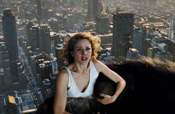 A fotó amellett, hogy humoros, végtelenül szexis is. Nekünk a King Kong című filmet juttatta eszünkbe: klasszikus, ötvenes évekbeli nőalak a felhőkarcolók fölött, a metropolisz a lába alatt.