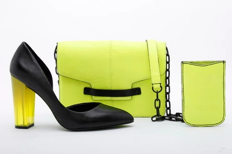 A Neon kollekció a hipermodern, mindig vibráló, szuperinteraktív nők szettje. Az áttetsző, neonsárga sarkú cipő izgalmas szettet alkot a bőr táskával és az Iphone-tokkal. Mert az Iphone-od nélkül ugye egy tapodtat sem mész?!