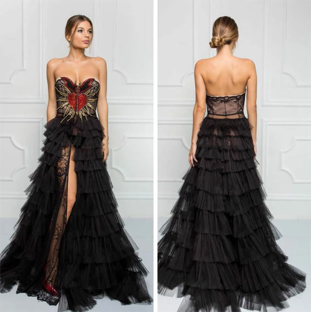 Igen, rengeteg darab van, ami nem feltétlenül meg nem értett, de túlontúl extra ahhoz, hogy forgalomba lehessen hozni, ilyen például a szentképes síoverál, vagy a köves, szíves ruha, ami szerepelt az X-faktorban is. Ennek a ruhának tüllfodros az alja, derékig sliccelt, és középen egy hatalmas köves, szívdekoltázs díszíti, aminek az az érdekessége még, hogy középen kapcsokkal rögzített, amiben egy pálca található, és ha ezt kihúzod, akkor az egész ruha leomlik. Nagyon durva és közben veszélyes is! Képzeld el, hogy elmész egy bálba és valaki véletlenül kihúzza, és leesik rólad a ruha! De legalább este nagyon könnyen levehető, ami akármelyik oldalról is nézzük – a nő vagy az úr részéről -, nagyon praktikus (nevet).