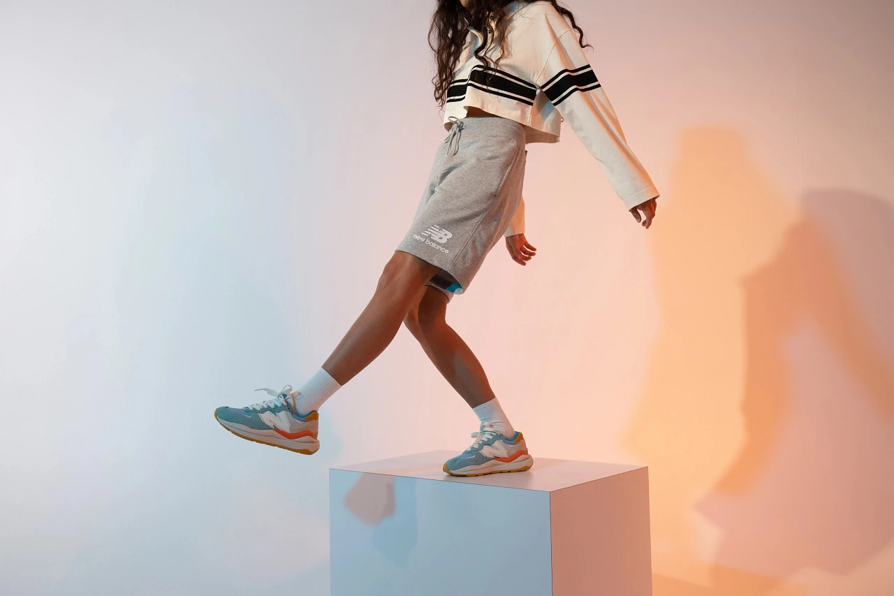 A négy cipőből álló kollekcióban az 57/40-esek a színkombinációk végtelen számú lehetőségeit vizsgálják, ami a modell több rétegből álló felépítésének köszönhető. A panelek számossága által nyújtott lehetőségeket ki is használja a New Balance, miközben minden egyes velúr és hálós panel kicsit nagyobb is lett az eredeti 574-es arányaihoz képest, és az 57/40 inkább a 90-es évek cipőinek maximalista esztétikáját idézi. A legfeltűnőbb a megnövelt N logó, ami a hasonlóan futurisztikus 327-esen is látható.