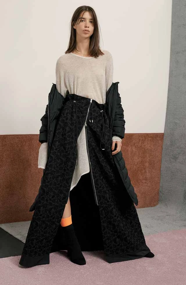 A kollekciót a 70-es és 80-as évek sziluettjei és hangulata jellemzi, mint a napsugárplisszé szoknyák, a bővülő ujjak és a bő nadrágok, azonban a dekonstruktívan megkomponált és felújított vonalak a sportos hatást és a modern design érzetét erősítik.