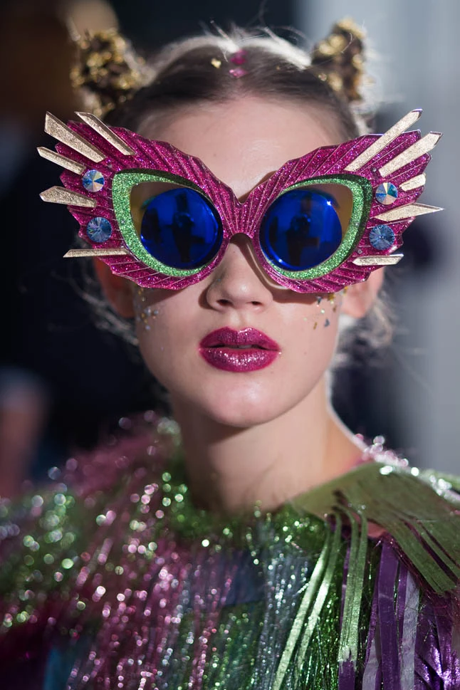 A kollekció négy művészeti irányzatot ölel fel. A bejelentés során megmutattuk a nyolc szemüveg egyikét, amely a giccset és annak magával ragadó bujaságát hivatott reprezentálni. Esetében Pierre et Gilles alkotásainak pikáns kisugárzása és szakrális látványvilága egyaránt hatott ránk a készítés során - csakúgy, mint Jeff Koons szikrázó és részletgazdag művei. A Swarovski kristályokkal díszetett duplakeretes szemüveget füst arannyal borított acetát "kristályok" ékesítik, amelyek kétségtelenül megadják a giccs valódi ízét.