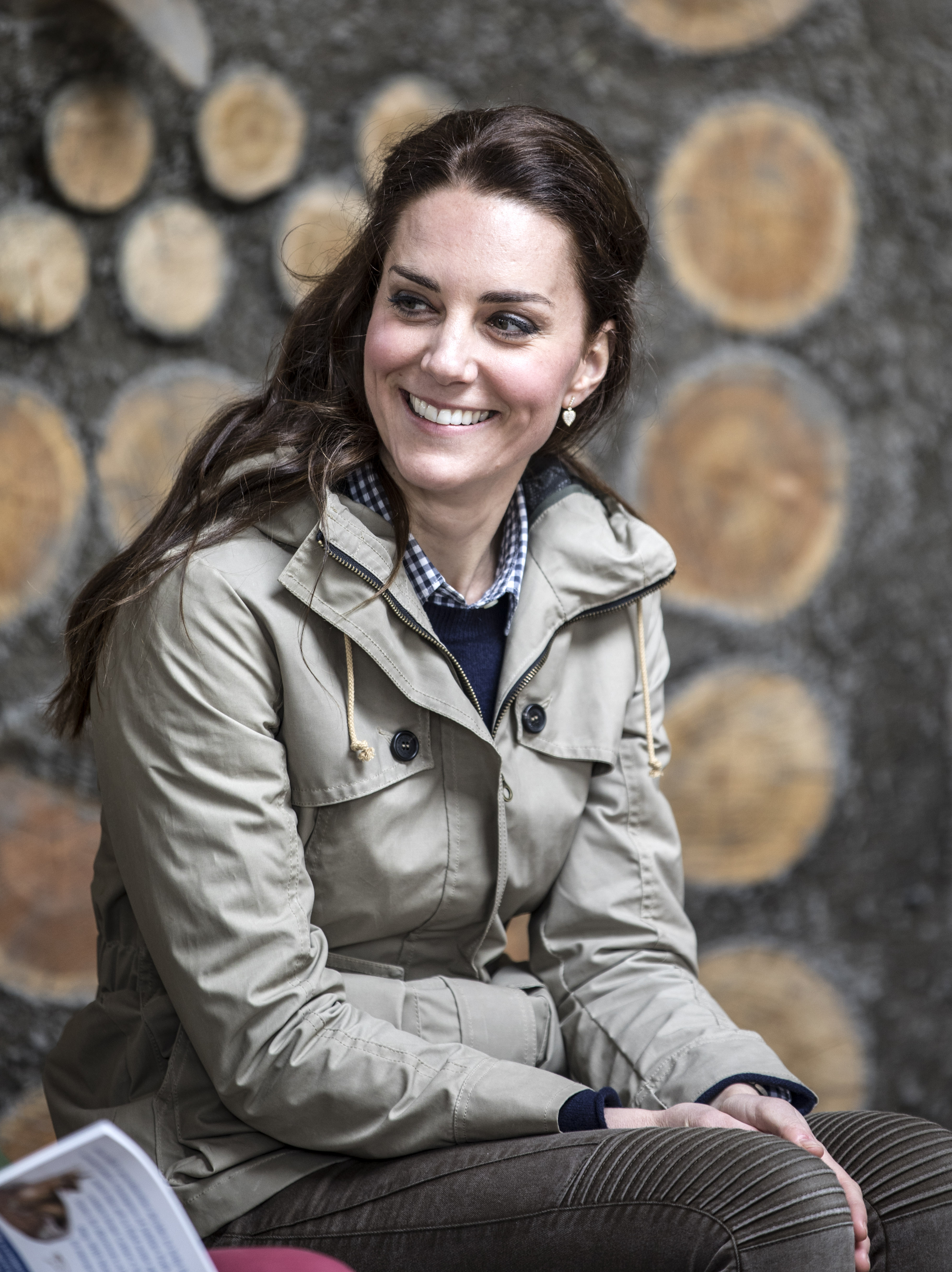 Kate egy visszafogott Gap pulóvert viselt 2017. május 3-án egy gyermekek számára is programokat kínáló farmon 2017. május 3-án Gloucestershire-ben: