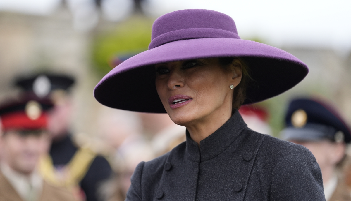 Ahogy földet értek szerdán Nagy-Britanniában, a First Lady lila, széles karimájú kalapja szintén beszédtéma lett, már csak azért is, mert szinte teljesen eltakarta viselője arcát. Marian Kwei szerint a kalap azt az üzenetet közvetítette, hogy Melania háttérbe kíván vonulni, és minden figyelmet férjére, Donald Trumpra irányítani. A ruhadarab színe - amely Trump nyakkendőjével harmonizált - szintén a támogatás és egység szimbóluma volt, emellett visszafogottságot tükrözött Melania időtlen, sötétszürke Dior kosztümje is.