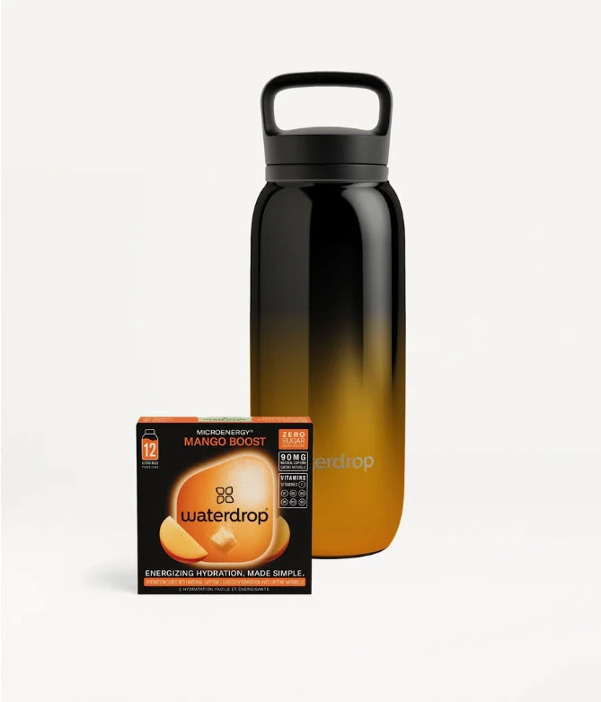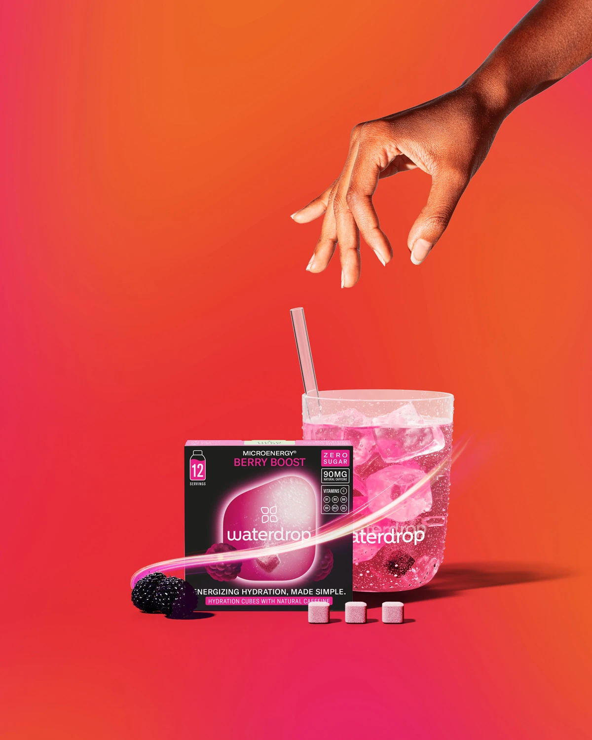 A Waterdrop legújabb Mango Boost és Cherry Boost Microenergy italkockái a guayusa és guarana természetes koffeintartalmával biztosítanak hosszan tartó, kiegyensúlyozott energiát. Minden italkocka 80 mg természetes koffeint tartalmaz (ami nagyjából két presszókávé koffeintartalmának felel meg), ráadásul hozzáadott cukor és mesterséges édesítőszerek nélkül!