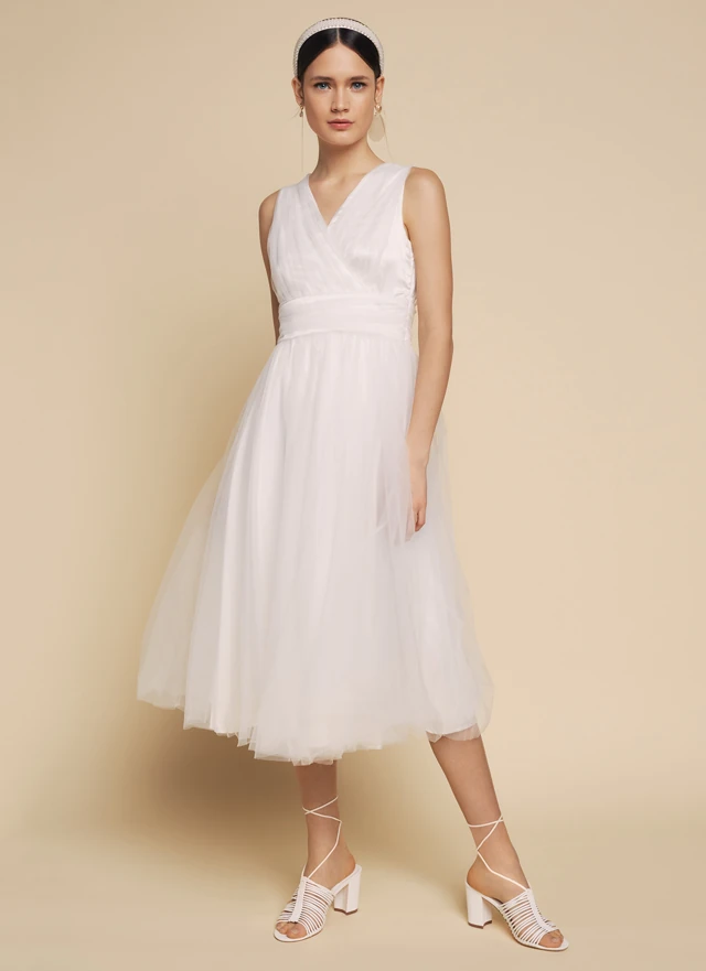 A BRIDAL Stories kollekcióban minden menyasszony és koszorúslány megtalálja a számára tökéletes ajánlatot. A Mohito tervezői odafigyeltek arra, hogy a kollekcióban legyen klasszikus szabású hosszú ruha díszítéssel, csakúgy, mint divatos 3/4-es hosszúságú darab. A BRIDAL Stories kollekcióban megtalálható hófehér ruha hangsúlyos derékkal, valamint halványrózsaszín félvállas ruha.