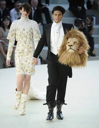 A Párizsban zajló haute couture bemutatók közül a Chanel aktuális show-ja mindig kitüntetett figyelmet érdemel, hiszen valami szokatlan újondonságra mindig számíthatnak a vendégek. A bemutatót most a Grand Palais hatalmas terében rendezték, ahová erre az alkalomra egy óriási aranyoroszlán is beköltözött, amely egy Chanel-gyöngyre lépve, ugrásra készen állt. A kissé félelmetes, de mindenképpen tekintélyt parancsoló látványosság körül lépkedtek a lányok.