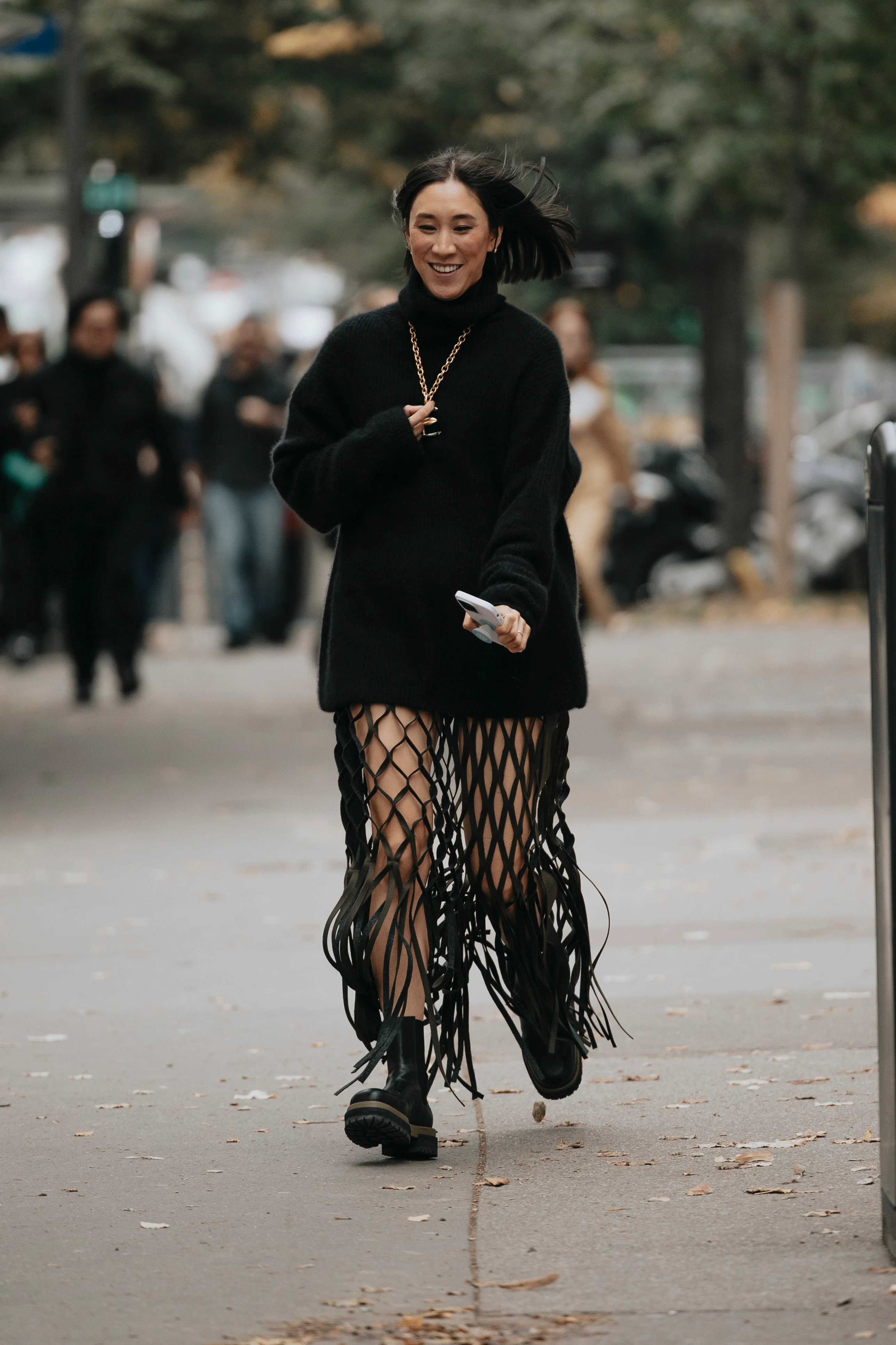 A tökéletes utcai megjelenés lehet ez a szett, amelyben egy izgalmas "meztelen szoknya" szerepel. Oversize pulóver átlátszó, horgolt szoknyával és bakanccsal párosítva, hogy egy menő, új pörgést kapjon a trend.