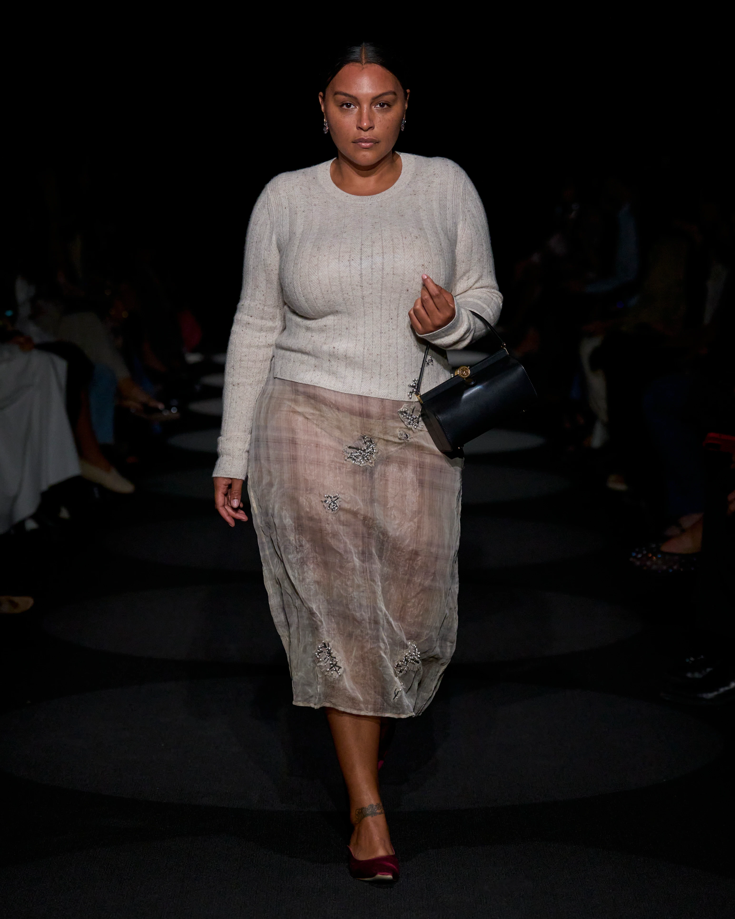 A meztelenszoknya viselése kihívást jelenthet formálisabb vagy konzervatívabb környezetben. A Carven kifutóján azonban úgy alakították át a megjelenés többi részét, hogy lágyabbá tegyék a szoknya stílusát, ami egy kicsit a csendes luxust eleveníti meg. Felül nehezebb anyagokat választanak, vagy olyan rétegekkel játszanak, amelyek kifinomultabbá teszik a megjelenést. Egy ilyen kombinációban akár az irodában is megállják a helyüket ezek a szoknyák.