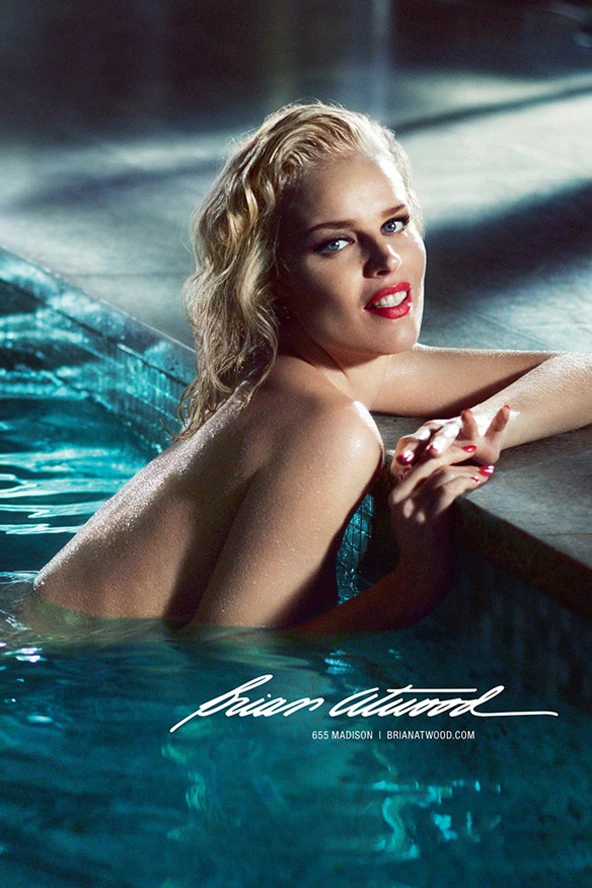 Most azonban hála a tökéletes adottságainak, a Brian Atwood egy pikáns reklámkampányra kérte fel. A cipőmárkáknak nem először jut eszébe, hogy egy szál magas sarkúban pózoló modellel hirdessék a legújabb darabjaikat. Ez a medencés megoldás azonban mindenképpen unikális. A Brian Atwood cipők gyönyörűek, Eva Herzigova szintén, és ez még akkor is így van, ha nem teljesen értjük a képek koncepcióját.