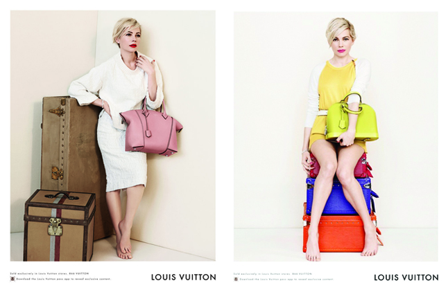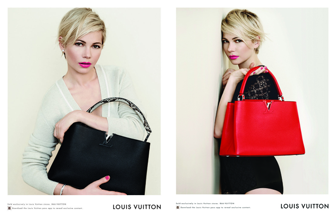 Michelle Williams a tavalyi nagysikerű szereplése utána ismét visszatért a Louis Vuitton kiegészítőinek a kampányarcaként.
