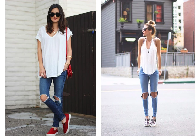 Hétvégi kiruccanáshoz bevállahatsz egy ultraszaggatott darabot is, sportcipővel vagy lapos szandival. A szetted többi darabja is lehet hasonlóan lazulós stílusú.