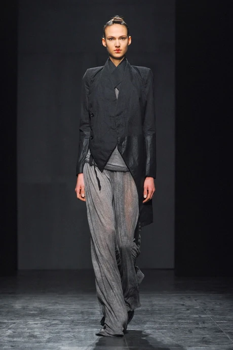 Új smink, cipőpróba, haj, ezt leginkább egy skorpió farokhoz tudnám hasonlítani, alacsony copf, körbetekerve fekete tüllel, ezt előrevezetve rögzítették a homlokhoz. Átöltözés, show time. Nagyon szép, különleges vonalvezetésű zakókból és kabátokból, illetve hosszú, alakot sejtető ruhákból állt a kollekció. Finálé után itt is csak annyira volt időm, hogy letekertem a tüllt a hajamról, lemostam a sminket, és irány castingolni a következő napok bemutatóira. Persze érkeztek az sms-ek, hogy ide-oda menni kell még, de mindent nagyon jól össze tudtam szervezni, a ruhapróba pontosan szemben volt az egyik castinggal, az utolsó pedig öt perc séta a szállásomtól, ezek az apró örömök nagyon fontosak ilyenkor. :) Természetesen most sem tudom, mi vár rám holnap pontosan, de a telefon állandóan mellettem van, és várom az információkat.