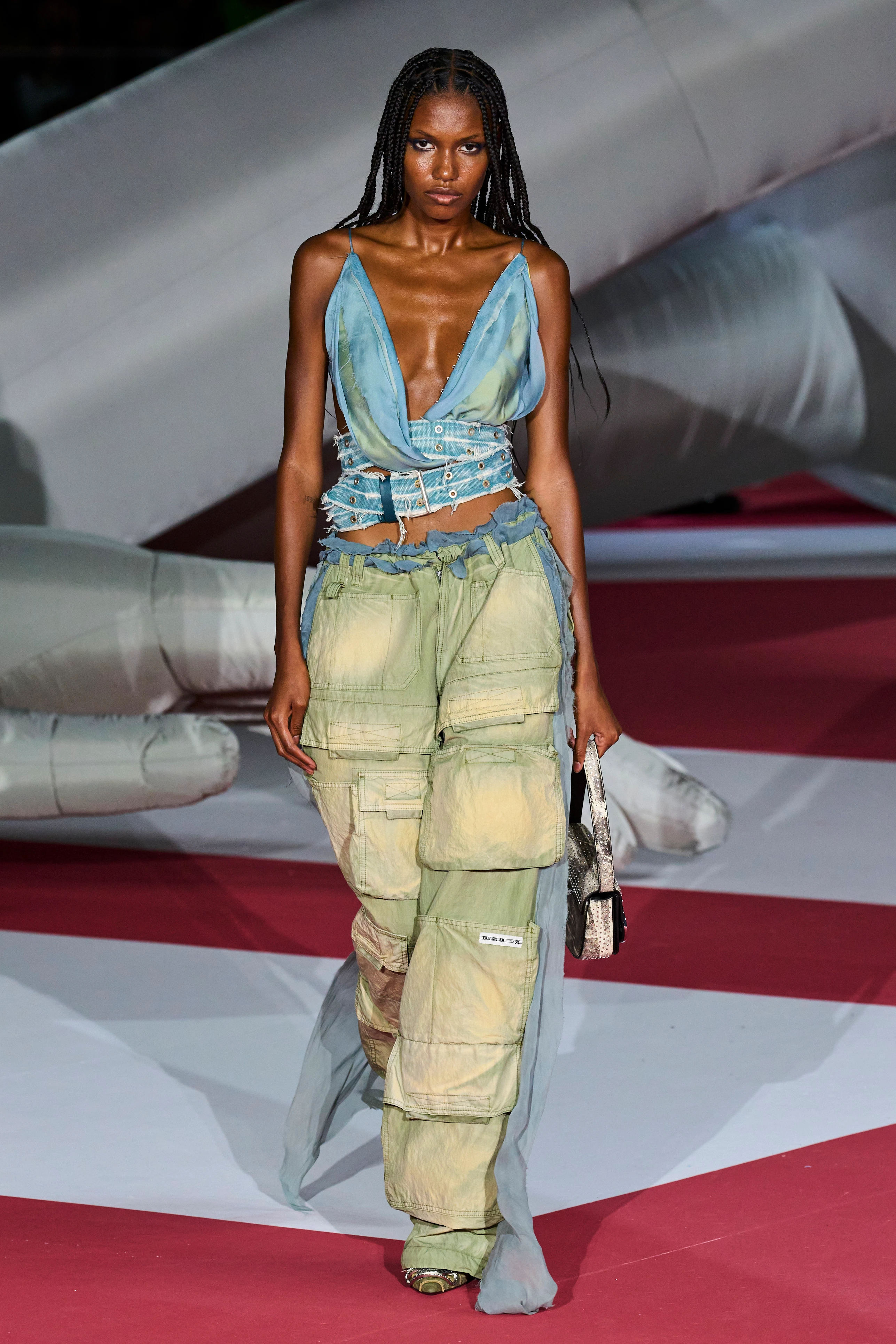 Az ezüst szín az egyik legnagyobb trend, amit az SS23-as kifutókon láttunk. Ha egy ilyen darab vásárlása mellett teszed le a voksod, akkor garantáltan a nadrágod kerül a szetted középpontjába. Azt javasoljuk, hogy ne akard túlkombinálni, válassz mellé egy fehér pólót vagy egy inget. A jó hír az, hogy a kifutón látottak szerint megjósolható: nem csak tavasszal, ősszel is hódít majd az ezüst nadrág.