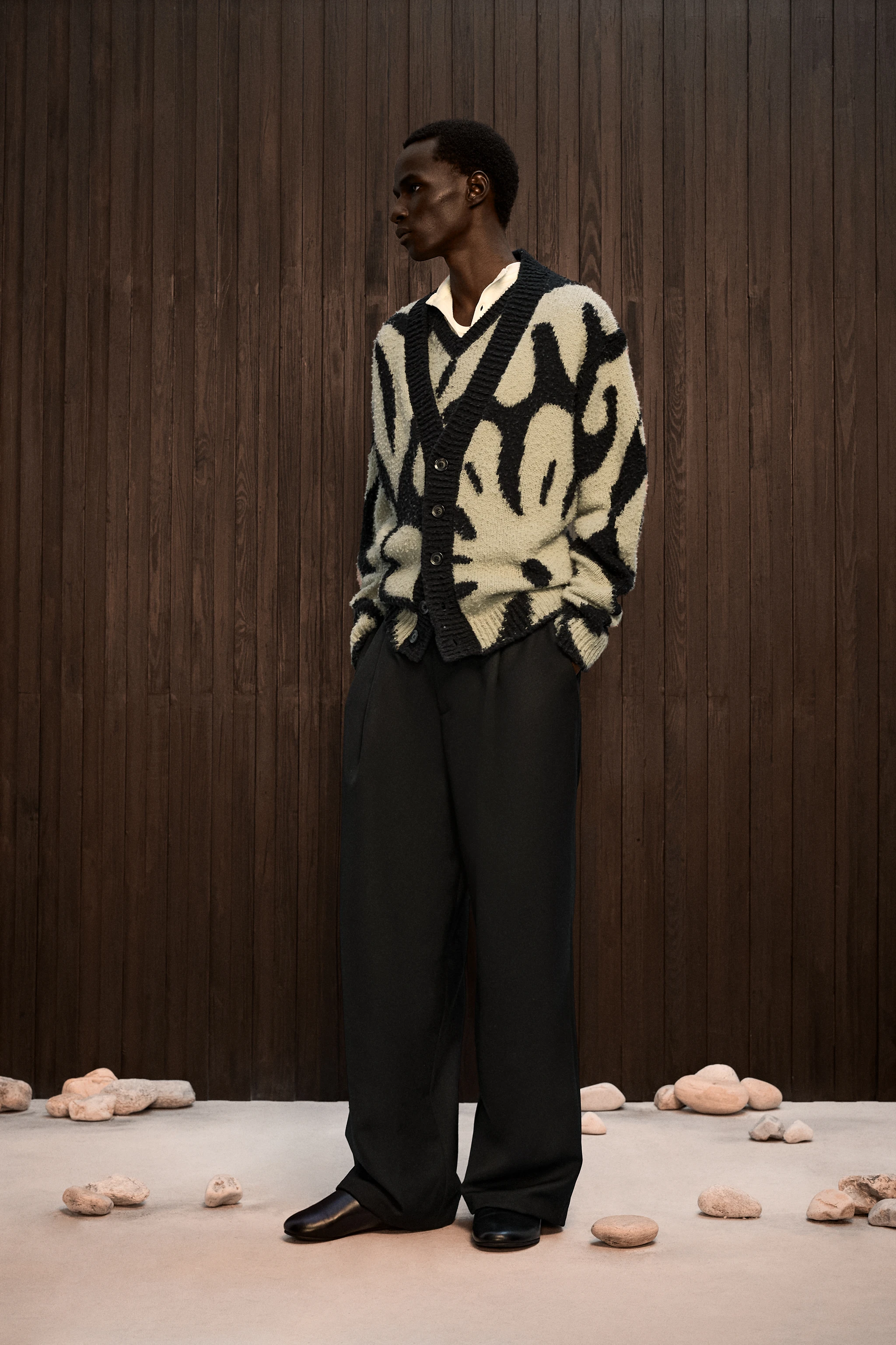 A Nanushka és a Zara együttműködésének központi eleme a férfiruházati kollekció, amely a kényelmet és az eleganciát ötvözi. A darabok között megtalálhatók a kifinomult szabású, szűk zakók, valamint a lazább, oversized sziluettek is. A kollekciót széles szárú pliszírozott nadrágok, elegáns kabátok és texturált kötöttáruk egészítik ki, amelyeket Casentino gyapjúból készítettek.