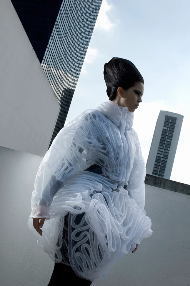 - Már a diplomamunkád is érdekes anyagkísérlet volt, az általad tervezett ruhák igazán futurisztikusak. Tervezéskor azért a hordhatóságra is próbálsz törekedni?