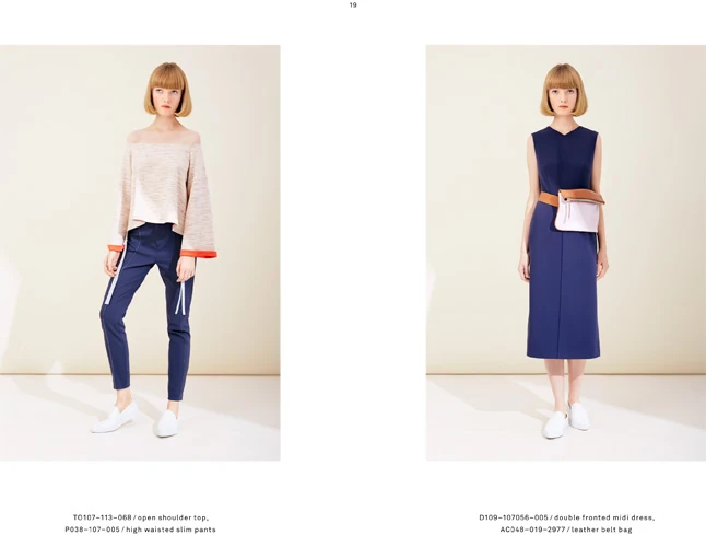 Tökéletes harmóniában van a modell nosztalgikusan romantikus, álombeli kreációkkal. Az Áeron így foglalja össze a legfontosabb tudnivalókat a friss darabjairól: "A kollekció egyes darabjait a retro stílusú Aust & Amelung kanapé inspirálta. A régi és új harmóniája között egyensúlyozva minden darab a ´70-es éveket idézi, miközben megmarad a modern kortárs jellege is. Nőies és légies sziluettek valamint minimalista struktúrák találkoznak a ´80-as évek pasztel árnyalataival, sportos összhatást teremtve. A különleges részletek, mint a rojtok, tűzések és zsebek frissességet kölcsönöznek a kollekciónak. A jellegzetes letisztult, egyszerű vonalvezetést olyan anyagok teszik izgalmassá, mint a finom búvár anyag vagy a velúr."