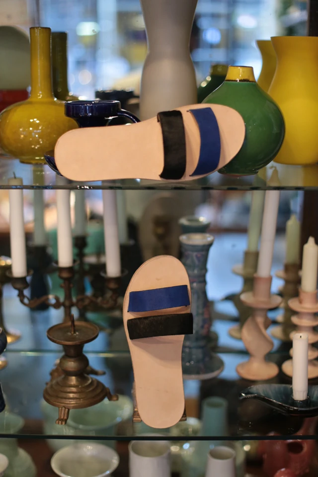 Egyelőre még a bőr a leggyakoribb, újrahasznosított vagy növényi cserzésű, ezt általában olivával készítik ki. Ha mi festjük, akkor Kemendi Ági szokott segíteni – ő a növényi festés specialistája itthon -, a lilás cipőink például bodzával, festőmályvával és timsóval lettek kiszínezve. Aztán van cipőnk Gucci szoknyából, szőrkabátokból, bútortextilből, saját régi bőrmaradékaimból, 70 éves selyemsálakból és indonéz fair-trade textíliákból is. Sokszor nem is én keresem az anyagokat, hanem azok találnak meg engem.
