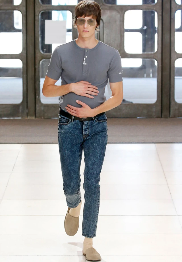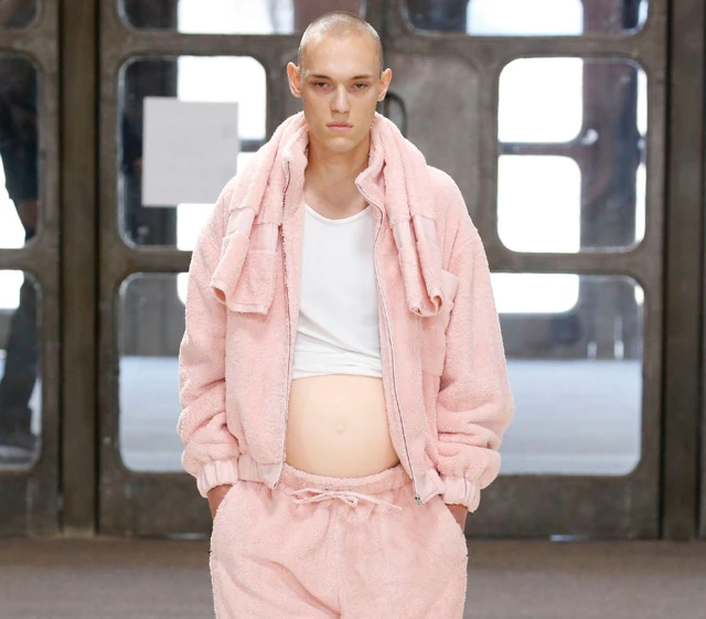 A "kispapák" ötlete már korábban felmerült a fashion színtéren, az Opening Ceremony, a Glossier és Eckhaus Latta kampányaiban is szerepeltek terhes férfiak, ám a trend a kifutón csak most debütált.