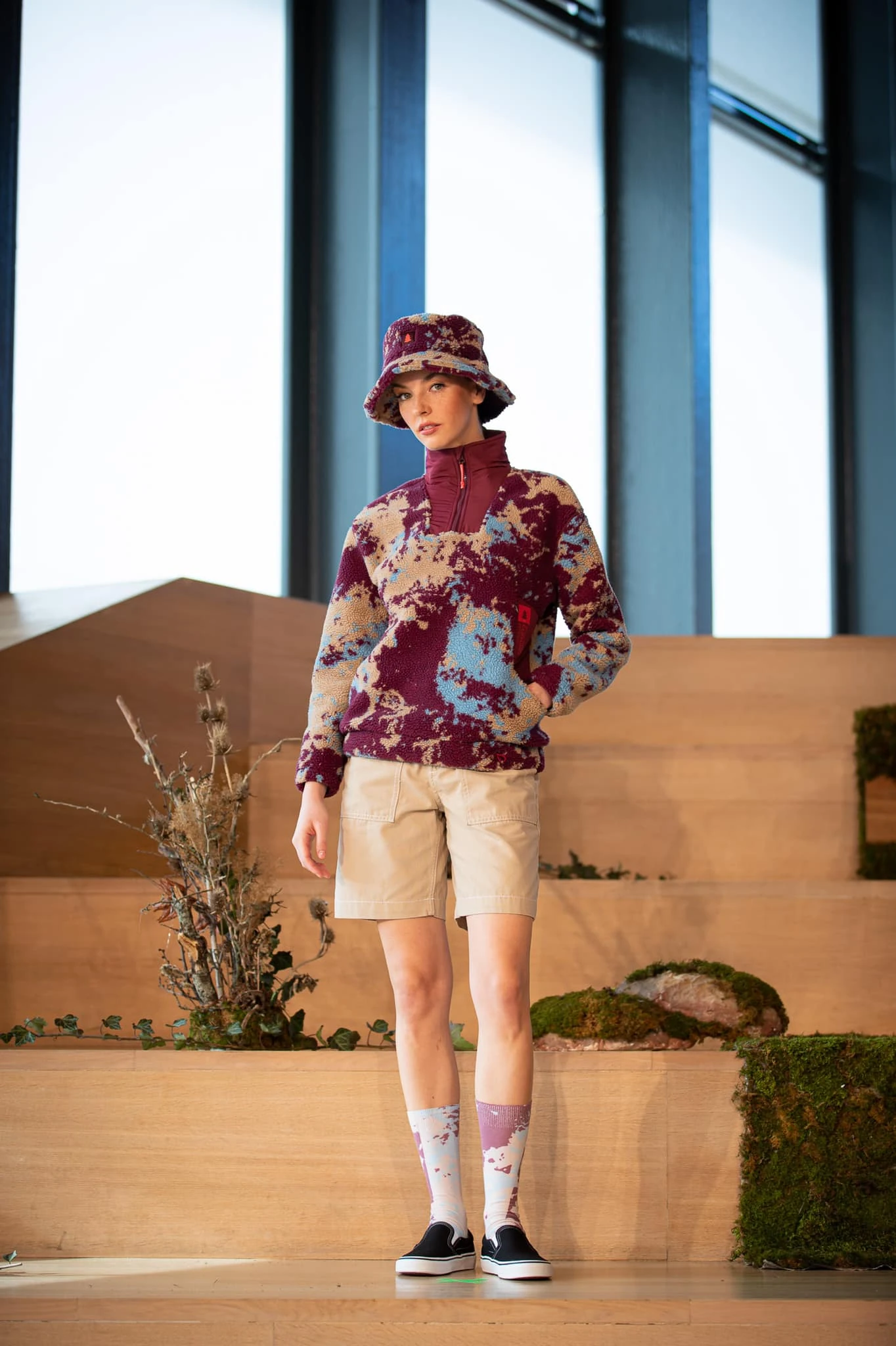 A prezentációhoz a tervezők mohával és fával dekorálták a helyszínt, ahol a modellek a föld színeit csodálatosan leképező ruhákban jelentek meg. A talajmenti növényzet inspirálta ruhadarabokon mohák, páfrányok és tűlevelű fenyőerdők mintázata jelenik meg. A kötött és sherpa anyagú ruháknál jacquard technológiát alkalmaztak, azaz a printelés helyett a minták az anyagba szőve készültek el. A Woodland kollekció sokszínűsége mögött azonban sokkal több áll, mint a természet szeretete, ugyanis nem egy, hanem három vonalát is láthattuk a márkának.