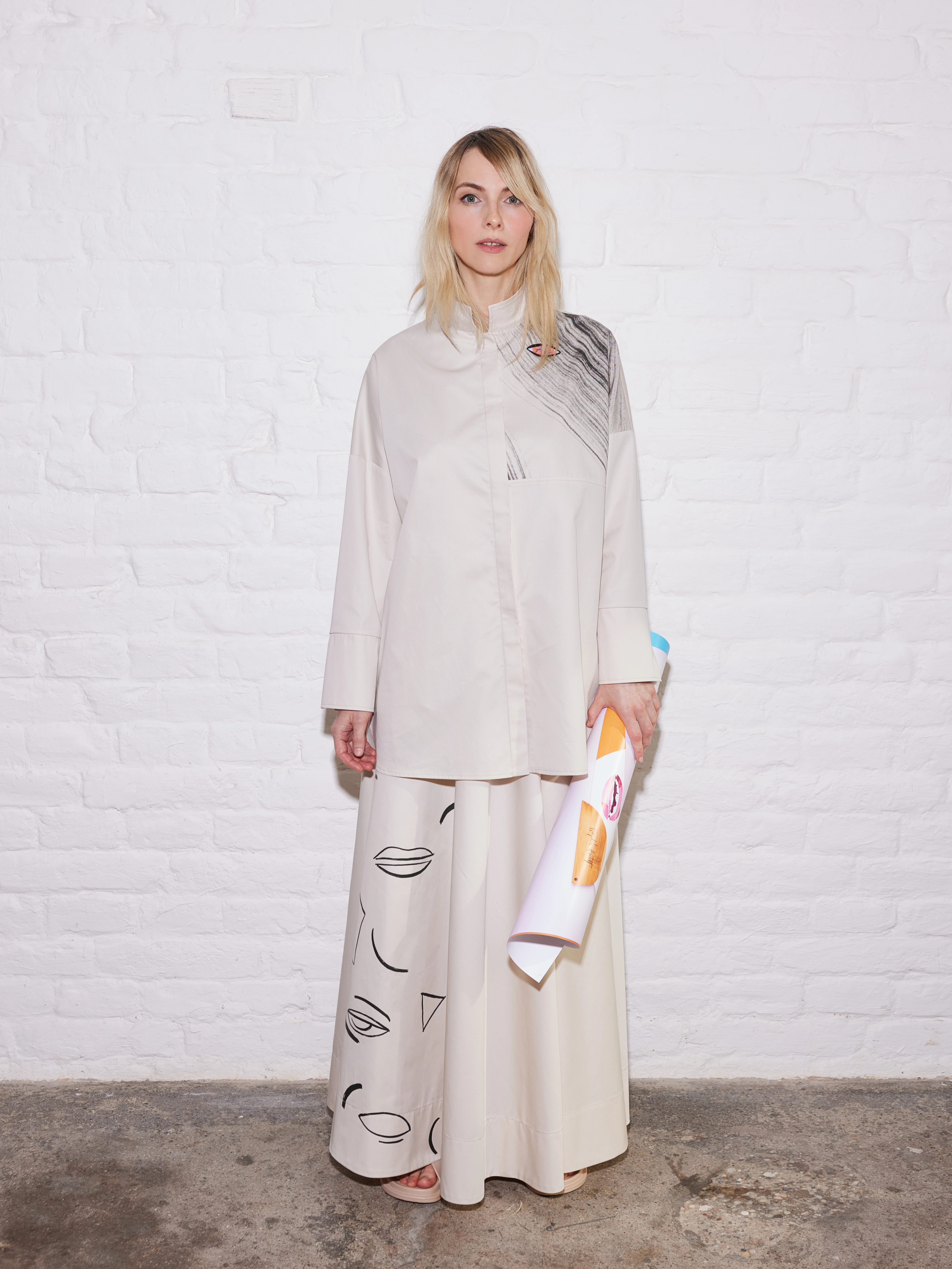 A kézzel készült részletek – mint a bőr applikációk, a klasszikus festővászonra emlékeztető sávolyszövésű natúr pamutvászon, vagy a szabad kollázstechnikával készült minták – mind a kézimunka értékét és az egyediség fontosságát emelik ki. A kollekció darabjai limitált példányszámban készültek, művészi nyomatokkal kiegészítve, így nemcsak öltözködési, hanem gyűjtői élményt is nyújtanak.