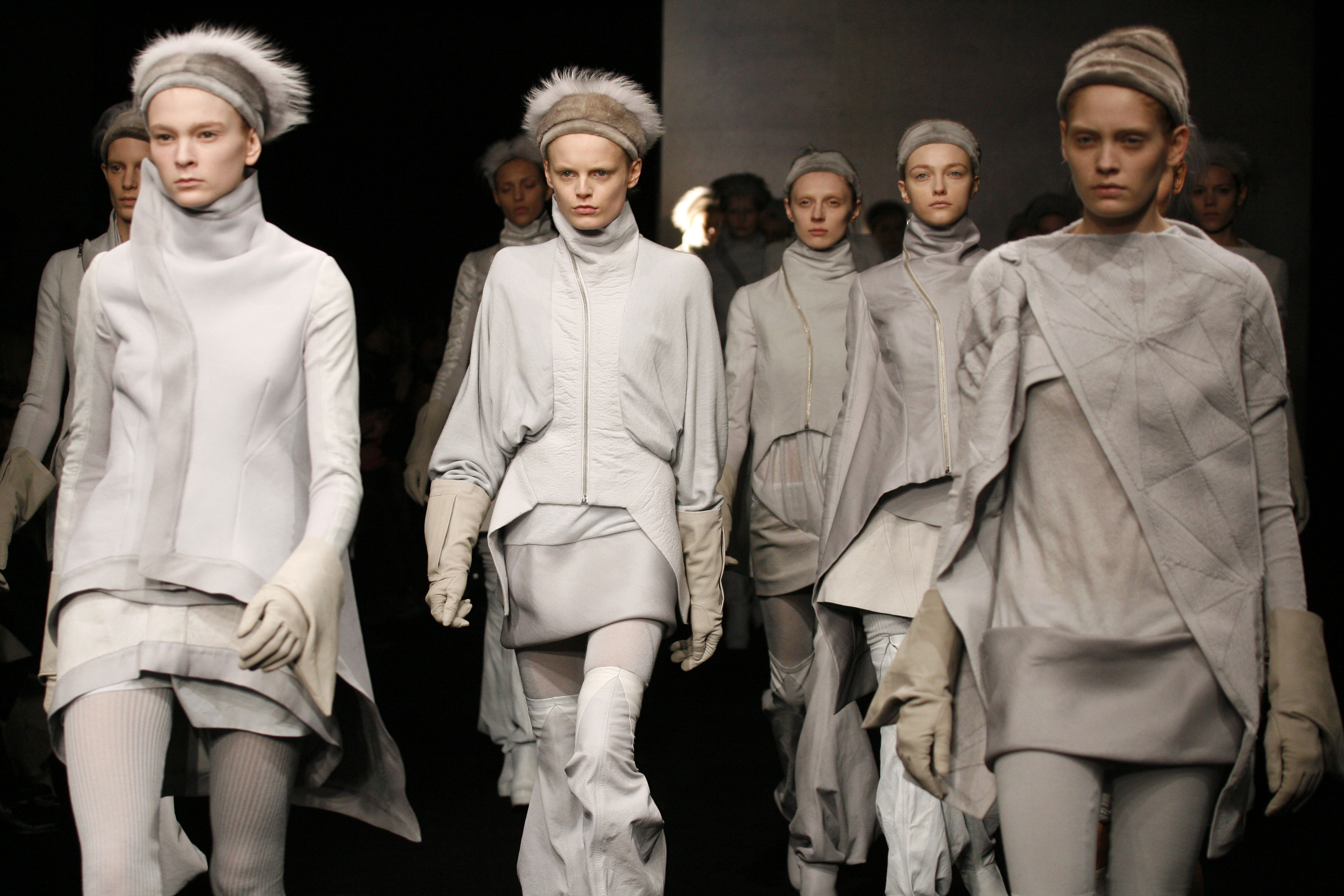 Mi olyan különleges Rick Owens munkásságában, hogy a Galliera befogadja? Nyilván hozzászoktunk már a divat múzeumi helyéhez (amikor a kiállítást megnézem, hét tisztán divatnak szentelt tárlat látható Párizsban), itt azonban más helyfoglalásról van szó. Egy kortárs alapítású márka (Owens 2002-ben mutatta be első kollekcióját New Yorkban) és annak kreatív tervezője kerül a középpontba. Ráadásul egy olyan tervező, aki egyik luxuscsoportnak sem adta el a brandet és talán utolsóként őrzi a divat hetvenes-nyolcvanas évekbeli radikalizmusának örökségét. A márka mögött a 2004-ben alapított Owenscorpe áll.