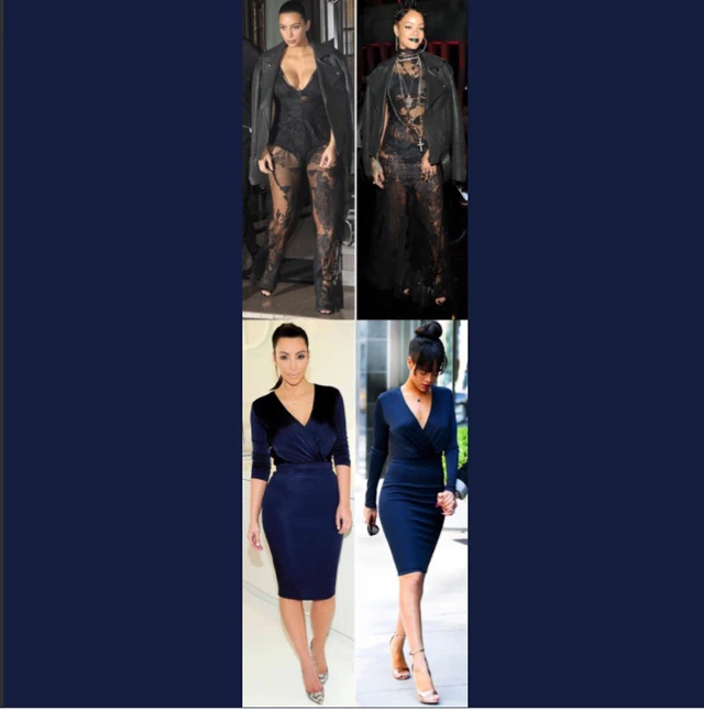 Először februárban láthattuk azokat a képeket, melyeken Rihanna és Kylie ugyanazt a ruhát viselték, csupán a szín volt eltérő. Ez elindította a lavinát és azóta számos kollázst készítettek arról, mikor melyik Kardashian-Jenner lány viselt Rihannával megszólalásig hasonló ruhát.