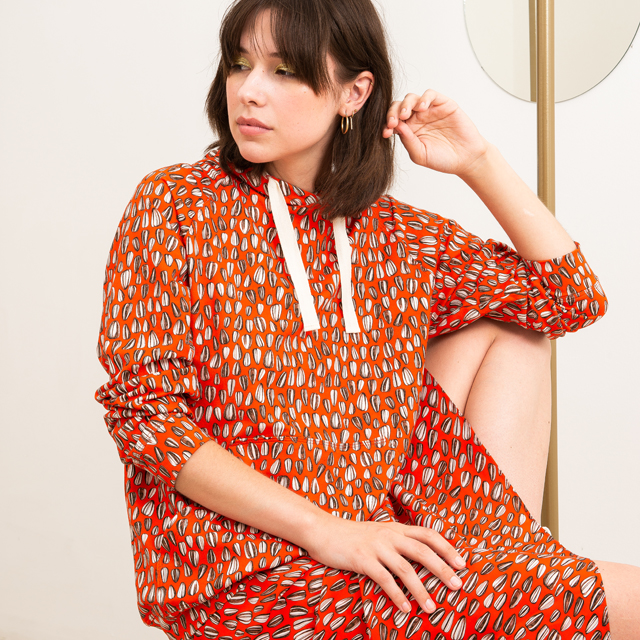 Igen, látom magam előtt. A minta mellett az anyag karaktere is meghatározza, hogy milyen ruhát lehet készíteni belőle, így az anyagokat is már úgy rendelem, hogy tudom mit szeretnék belőle készíteni. Szeretem a puha, selymes természetes anyagokat, így a kollekció minden egyes darabja viszkóz, pamut, cupro vagy gyapjú anyagból készül.