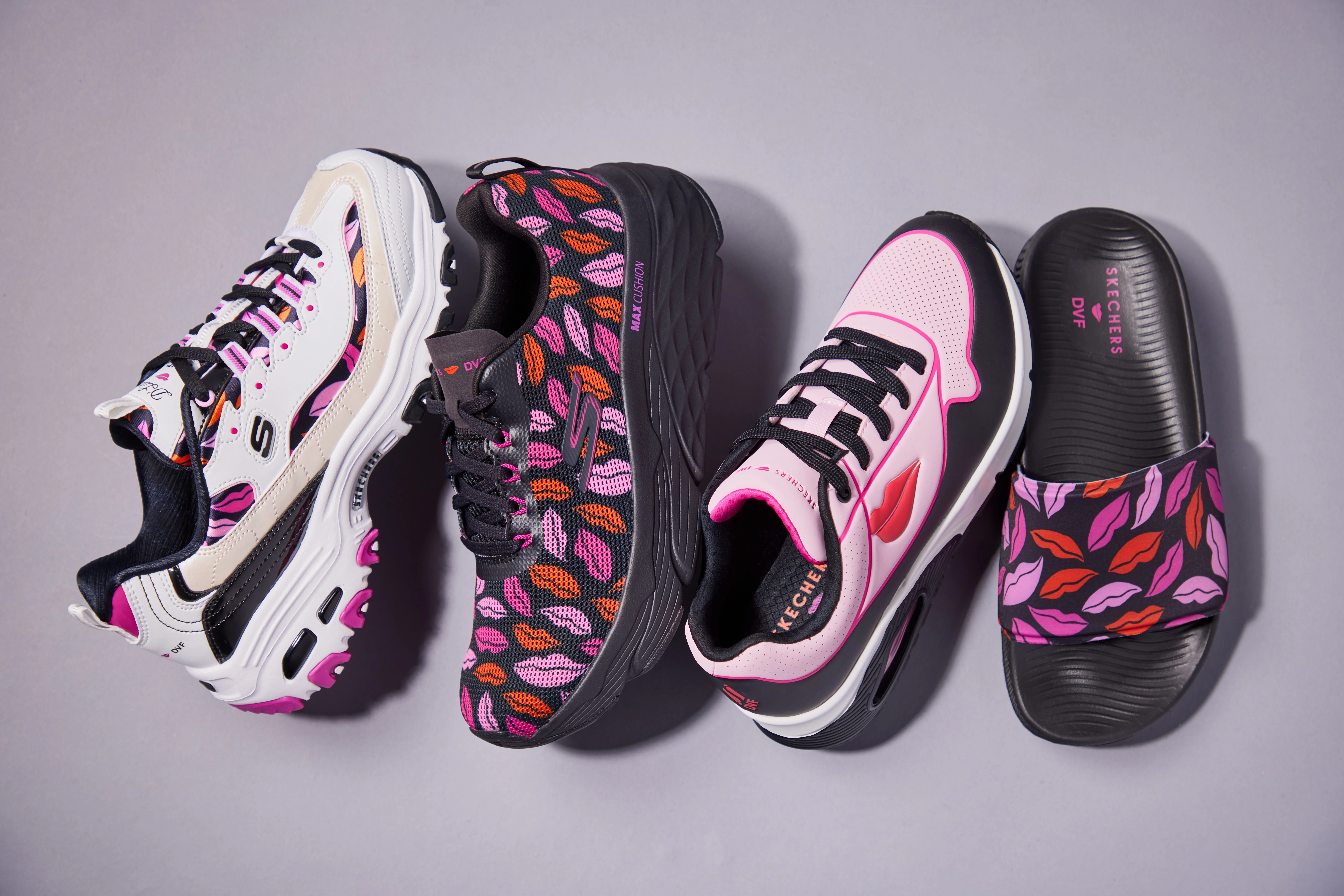 A Skechers x DVF kollekció - Endless Kisses címmel - már debütált, további termékek megjelenése 2023 folyamán várható. Diane von Furstenberg a színekhez, nyomott mintákhoz való egyedi megközelítéséről, valamint a nőknek erőt adó, és őket előtérbe helyező divat megteremtéséről ismert.