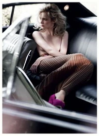 Stefano Galuzzi fotóin a magyar topmodell dögös csábítóvá változott, és a természetben, egy autóban ülve pózol kócos hajjal.