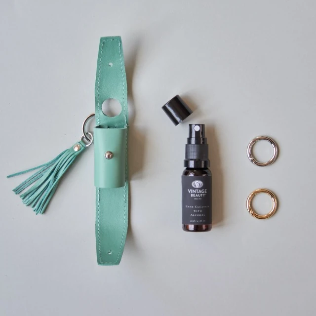 A nappabőrből készült tokban egy illóolajokkal kevert alkoholos kéztisztító került, melyet Szakonyi Eszter a Vintage Beauty-tól alkotott meg. A menő tokot pedig Kiss Katalin stylist tervezte, amit egy karabinerrel lehet a táskádra, övedre, vagy kulcstartódra akasztani, hogy mindig kéznél legyen.
